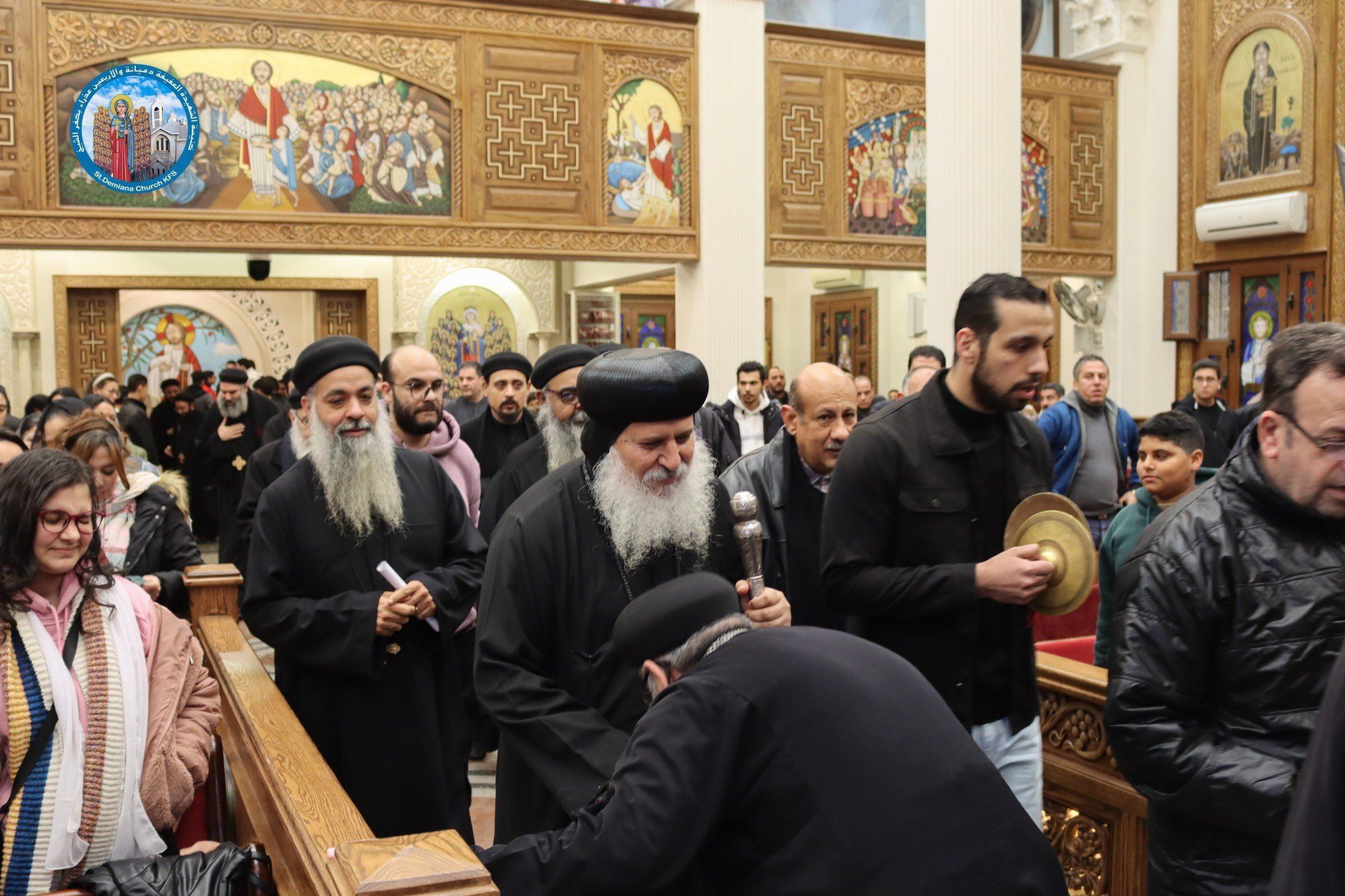 كما شهدت كنيسة القديسة دميانة، حضور نيافة الحبر الجليل الأنبا ماركوس، أسقف دمياط وكفر الشيخ والبراري ورئيس دير القديسة دميانة، ولفيف من الآباء الكهنة.