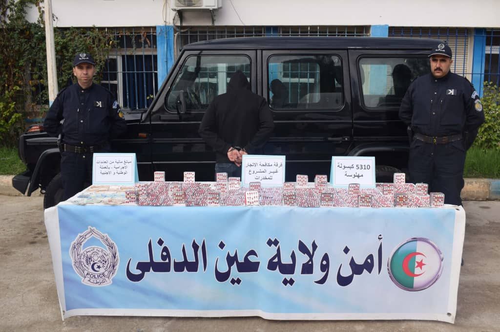 تمكنت شرطة عين الدفلى ممثلة بفرقة مكافحة الإتجار غير المشروع للمخدرات بالمصلحة الولائية للشرطة القضائية من ضبط 5310 كبسولة مهلوسة على دفعات.
