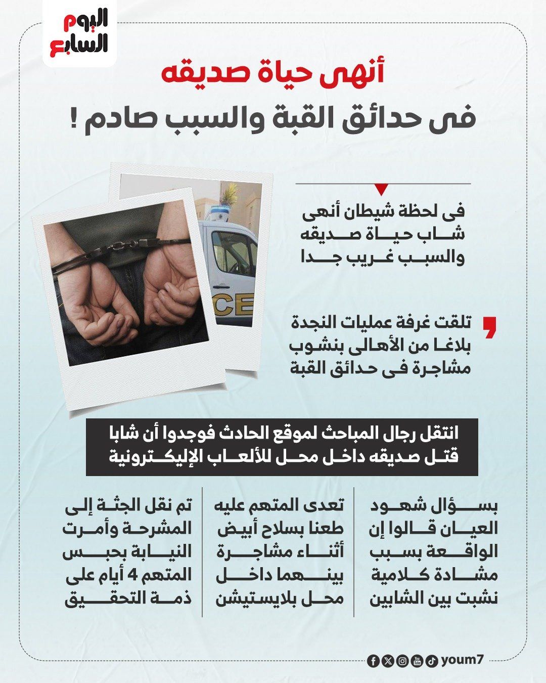 أنهى حياة صديقه فى حدائق القبة بسبب لعبة بلاستيشن.. انفوجراف