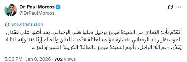 دكتور بول مرقص ينعي هلي الرحباني نجل فيروز