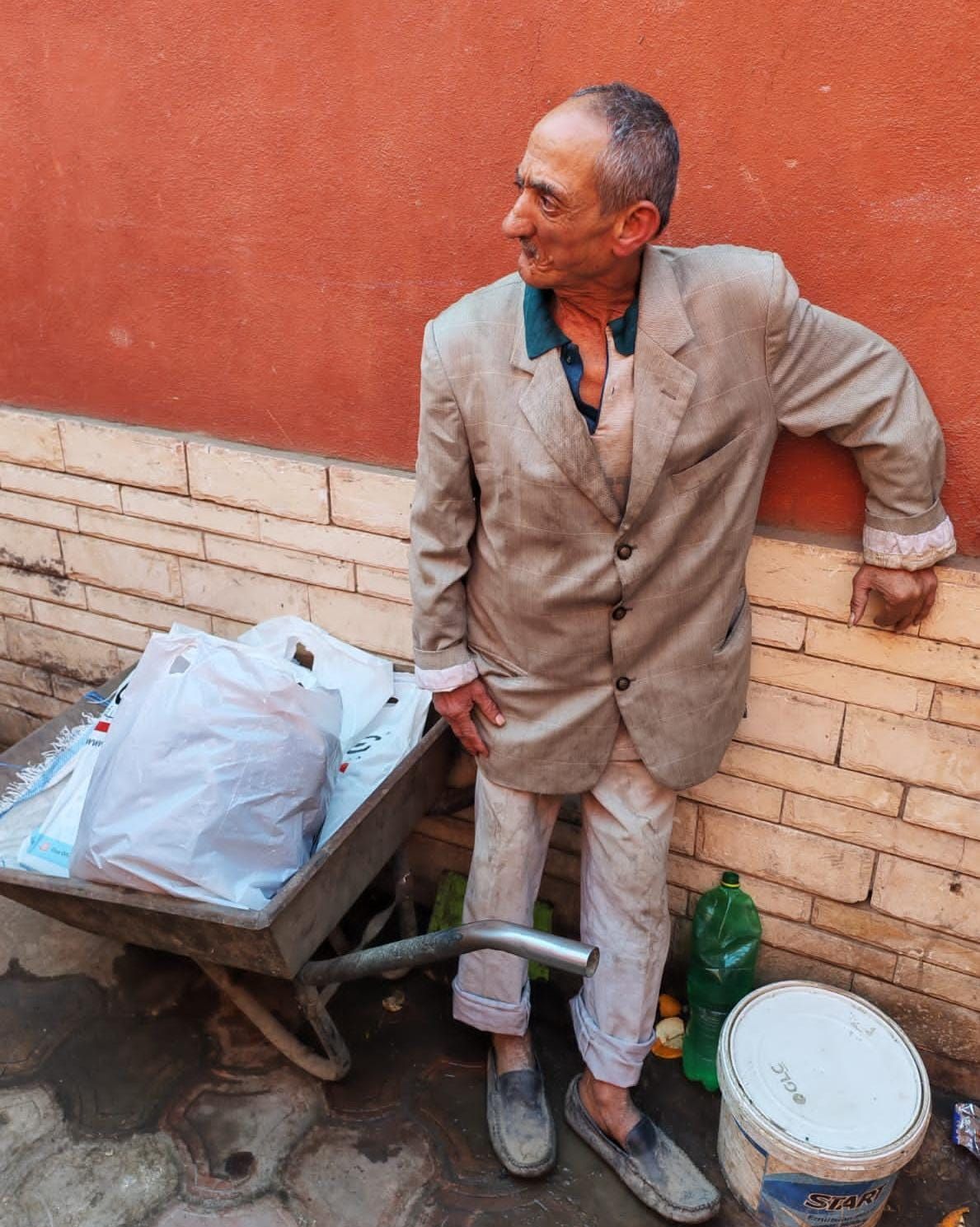 وتعود معاناة عم سيد الصحية إلى أكثر من أربعين عامًا، حين أُصيب بخُراج في وجهه أثناء عمله، وخضع على إثره لعملية جراحية تركت تشوهات واضحة في ملامحه لم تفارقه حتى اليوم. ورغم الألم والمعاناة، لم تمنعه الإصابة ولا كِبر السن من مواصلة العمل الشاق، متنقلًا بين أزقة السوق، حاملًا مشتريات المتسوقين من الداخل إلى الخارج، مقابل ما يجود به الزبائن حاملها فىى البراويطة.