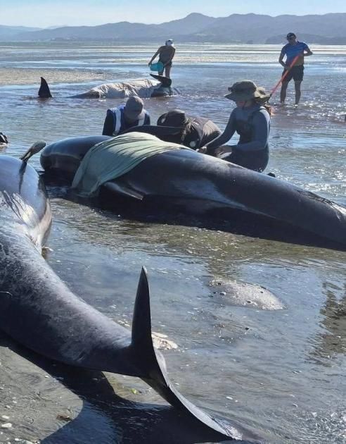 وقال مشروع جوناه، في بيان على «فيسبوك»، إن الفرق تتفقد الشواطئ في جولدن باي حيث يقع فيرويل سبيت بحثاً عن حيتان أخرى تقطعت بها السبل وتعمل على الحفاظ على ظروف الحياة للحيوانات الناجية لحين ارتفاع المد بعد الظهيرة.