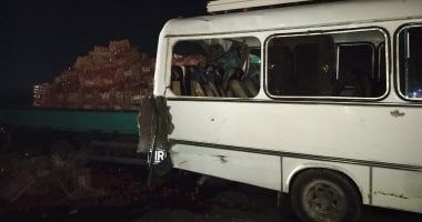 السبت، 10 يناير 2026 04:00 صأصيب 21 شخصاً فجر اليوم السبت فى حادث تصادم سيارة نصف نقل باتوبيس مبنى باص من الخلف، على الطريق الصحراوي الشرقى بالقرب من نفق ابو صالح ، نطاق محافظة بنى سويف.