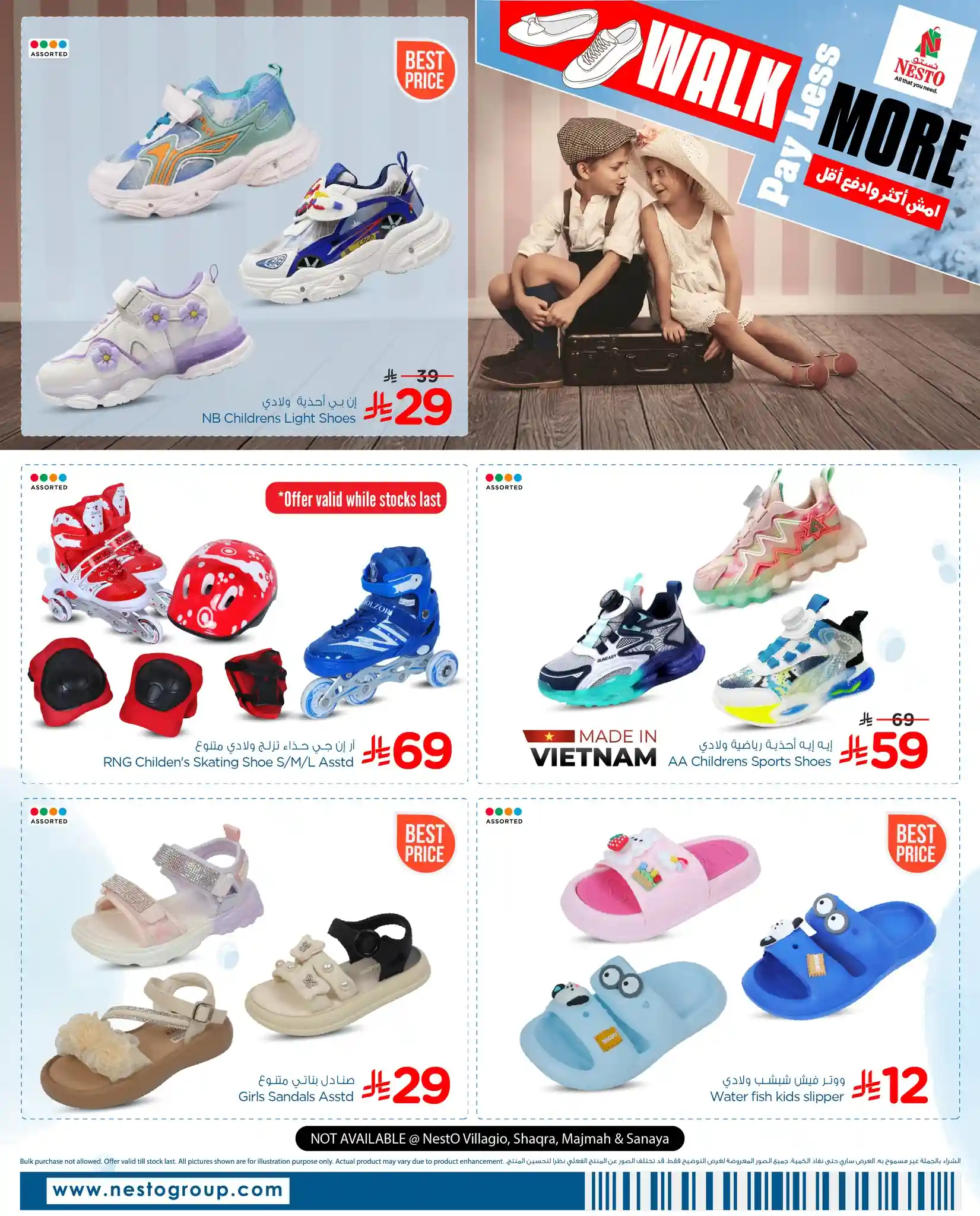 عروض نستو الرياض سارية من 11 يناير حتى 27 يناير 2026 خصومات احذية الاطفال فى فروع نستو الرياض و نستو البطحاء و نستو العزيزية و نستو المدينة الصناعية و نستو الملز و نستو الرس و نستو شقراء و نستو المجمعة و نستو فيلاجيو مول و نستو بريدة