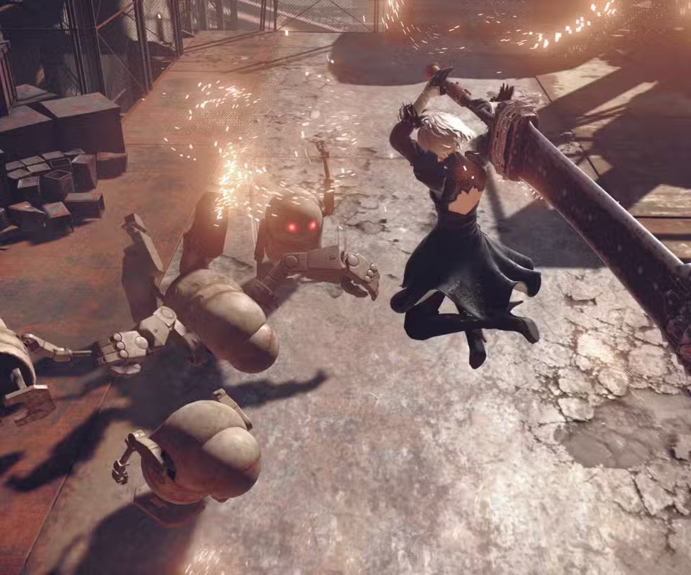 يعتمد نظام القتال في Nier Automata على التبديل المستمر بين أنماط هجوم مختلفة حيث يمكن للاعب الدمج بين الهجمات الثقيلة والهجمات الخفيفة لتشكيل سلاسل قتالية متتابعة تعتمد على التوقيت والتموضع الصحيح داخل ساحة المعركة.