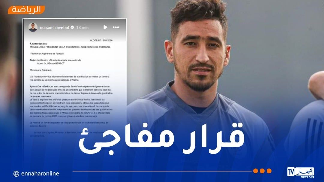 وأوضح بن بوط في رسالته التي نشرها عبر صفحته الرسمية على “انستغرام” عبر خاصة “الستوري” قائلا: “يشرفني أن أعلمكم رسميا بقراري وضع حد لمسيرتي مع المنتخب الوطني الجزائري”.