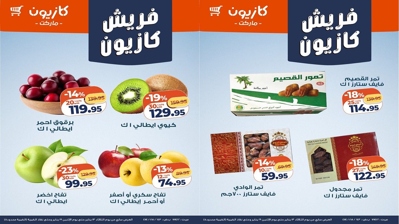 العروض الجديدة من كازيون تسرى من 13 يناير حتى 19 يناير 2026 فريش كازيون فى جميع فروع كازيون