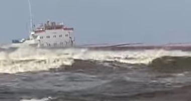 جنوح السفينةوتعرضت السفينة للجنوح، ودفعتها التيارات المائية القوية باتجاه الشاطئ، وسط صعوبة في التحكم بمسارها بسبب شدة الرياح وارتفاع الأمواج.