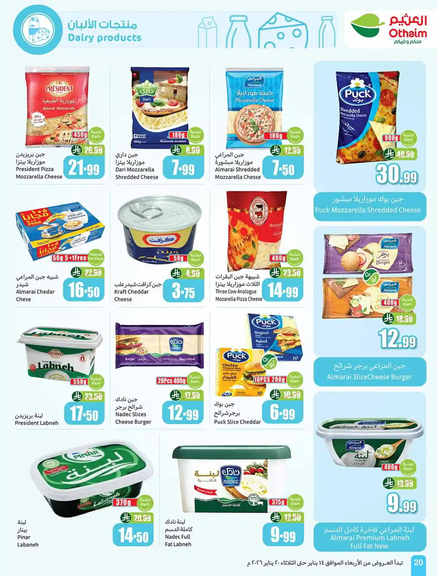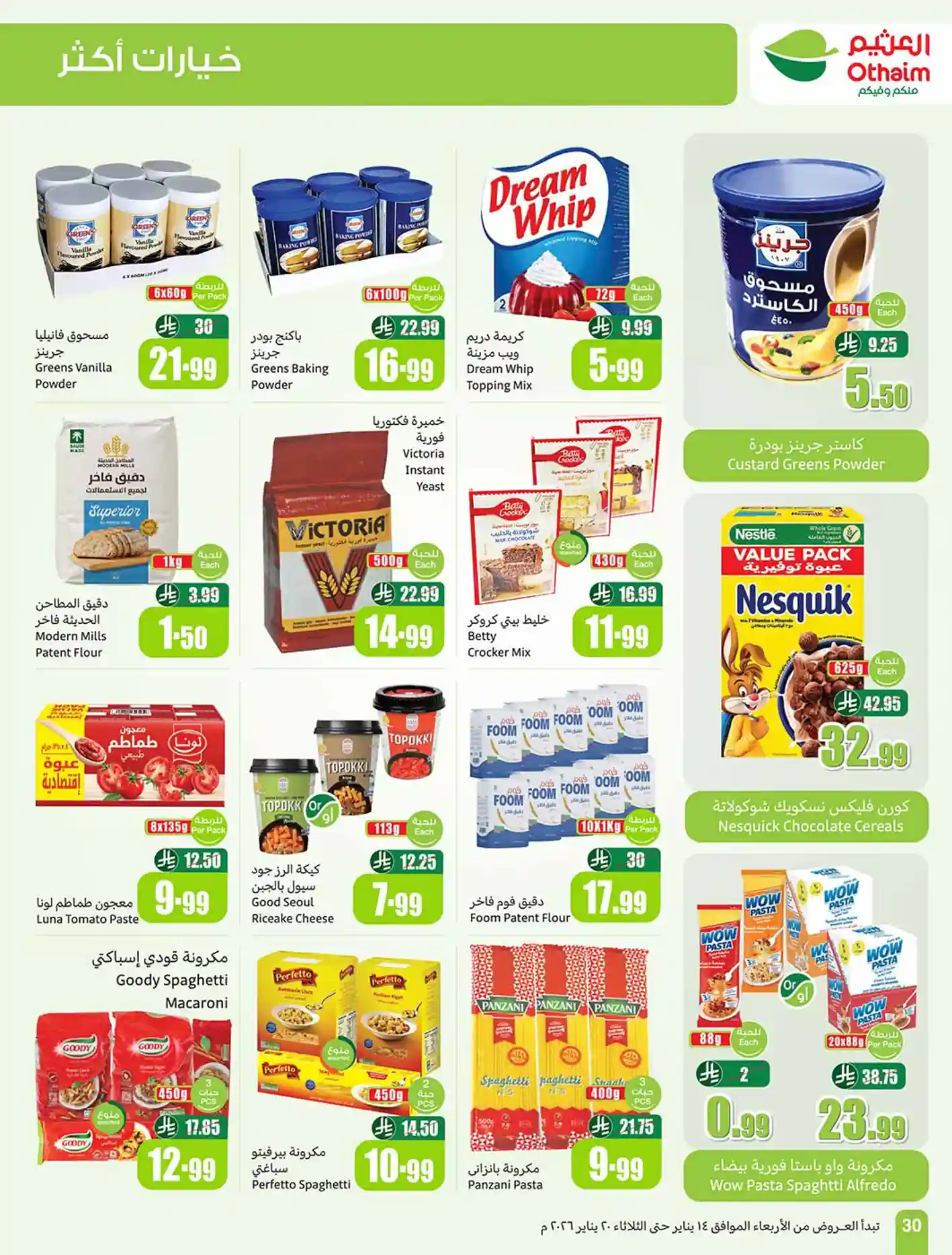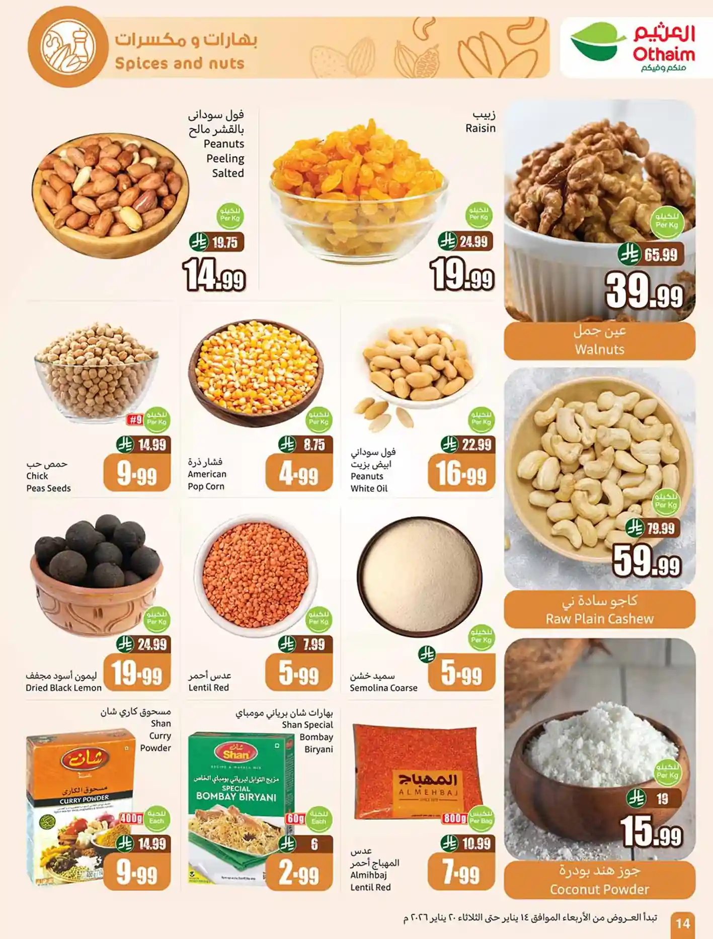 عروض نت تقدم لكم احدث عروض العثيم السعودية اليوم الجديدة فى صفحة واحدة – العروض الاسبوعية من اسواق العثيم هايبر ماركت – و ذلك من 14 يناير حتى 20 يناير 2026 او حتى نفاذ الكمية من اسواق عبد الله العثيم السعودية بجميع الفروع.