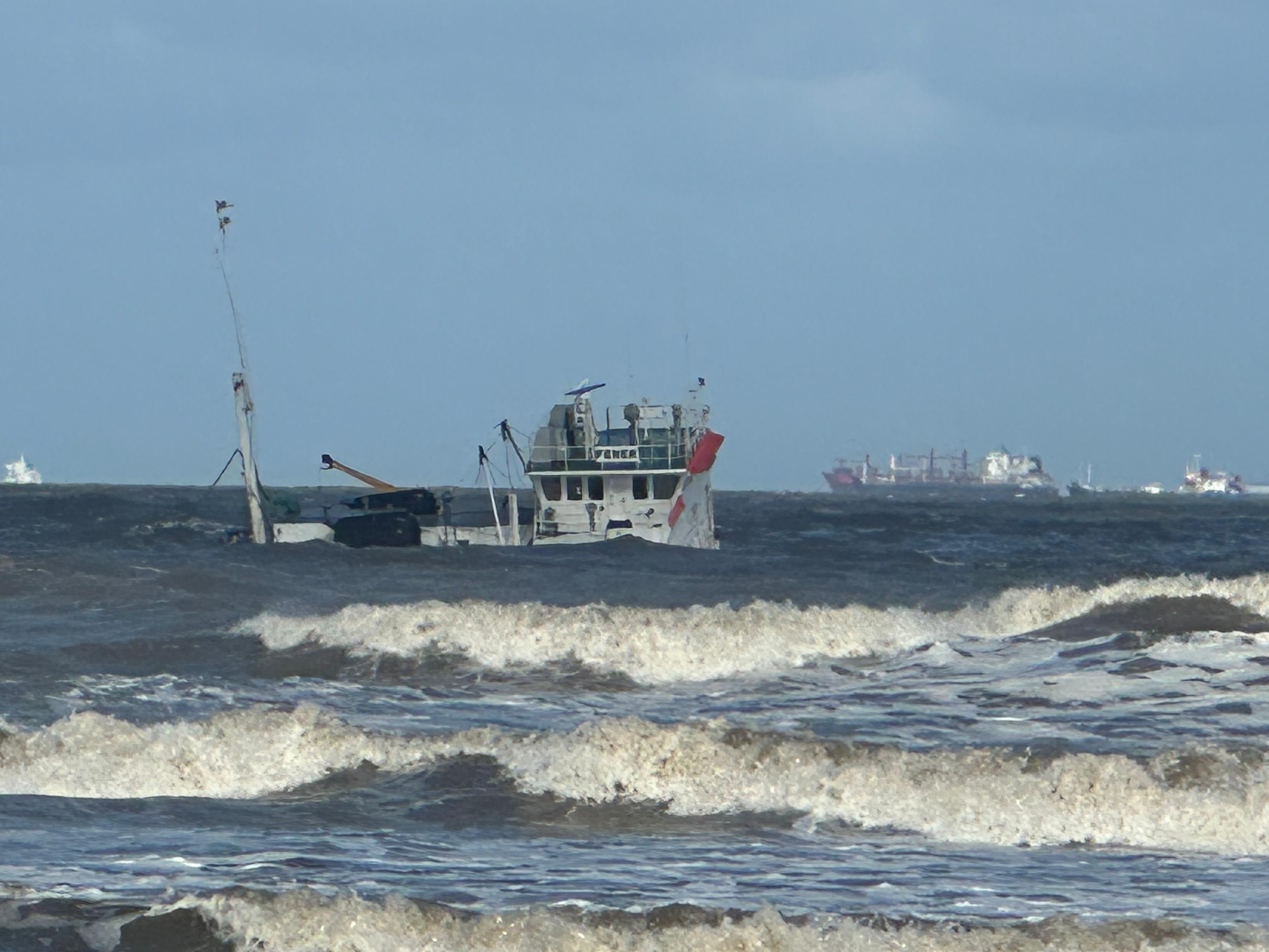 إنقاذ طاقم سفينة البضائع الجانحة قبل غرقها خارج المجرى الملاحى.. وصور