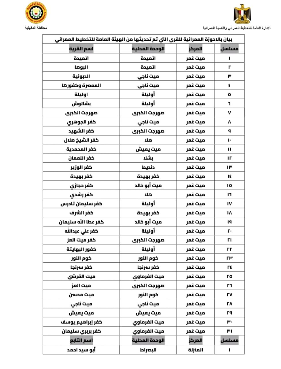 وأوضح محافظ الدقهلية أنه اعتباراً من يوم الأحد القادم ستكون تلك التحديثات متاحة للمواطنين بالمركز المذكور، وسيتم تسليم تلك التحديثات للحيز العمراني الجديد اليوم وغدا للوحدة المحلية، لتتولى بدورها الإعلان عنها للمواطنين.