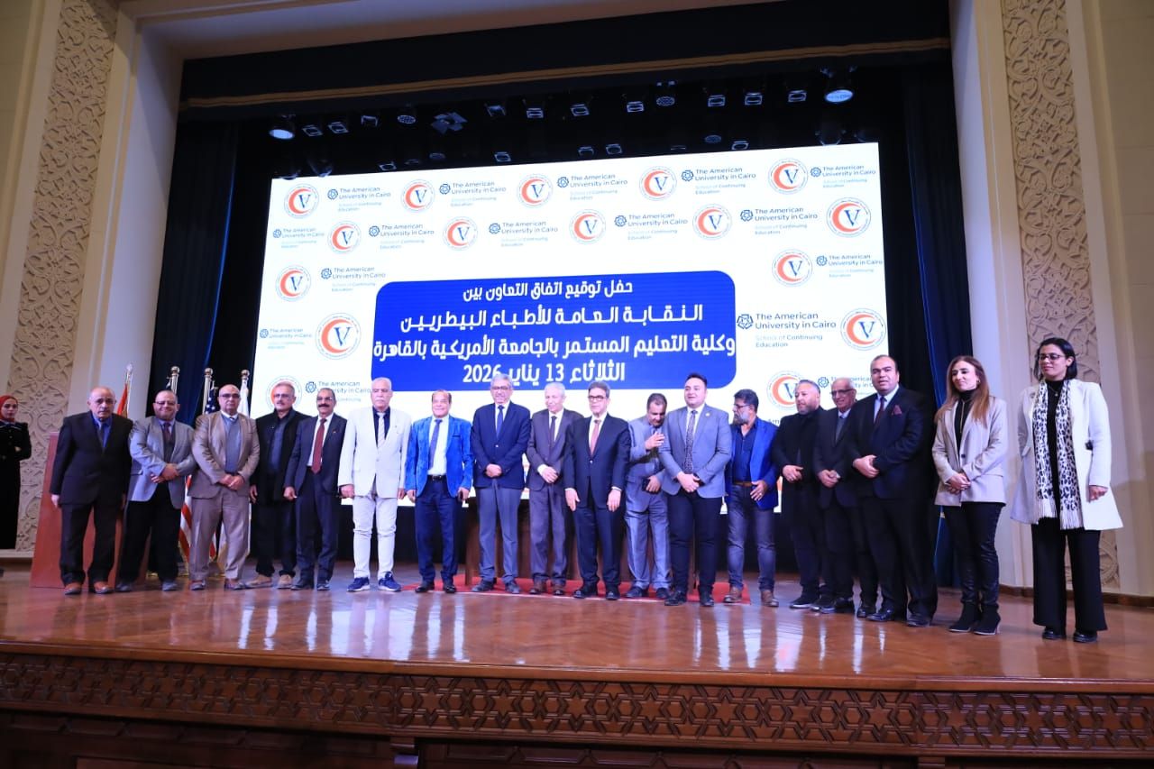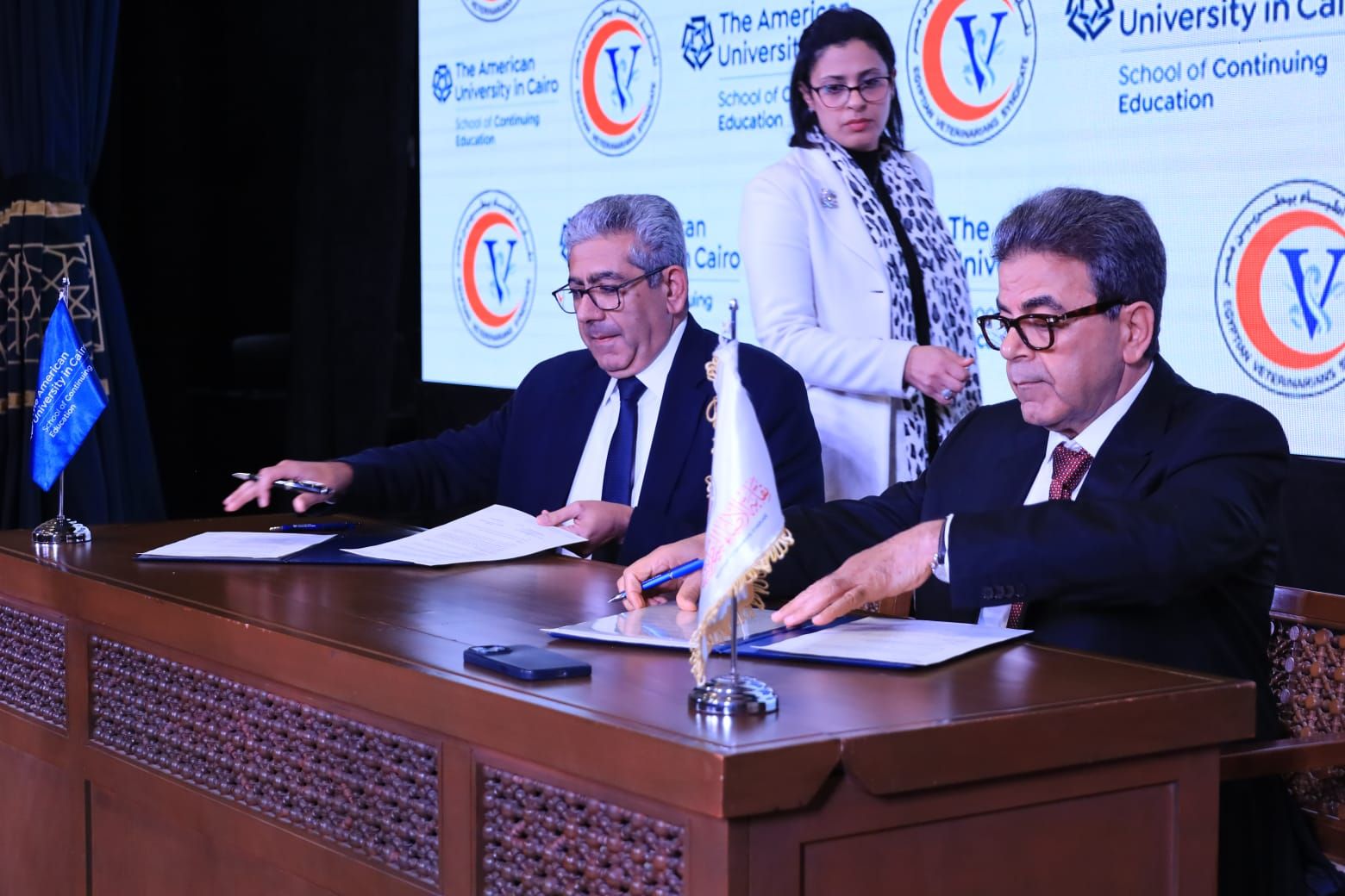 فى إطار دعم التطوير المهني وبناء القدرات، شهدت الجامعة الأمريكية، فعاليات حفل توقيع اتفاق التعاون بين النقابة العامة للأطباء البيطريين وكلية التعليم المستمر بالجامعة الأمريكية بالقاهرة.