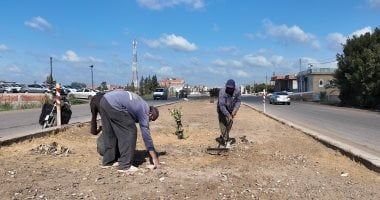 زراعة الأشجار بمدخل كفر الشيخ