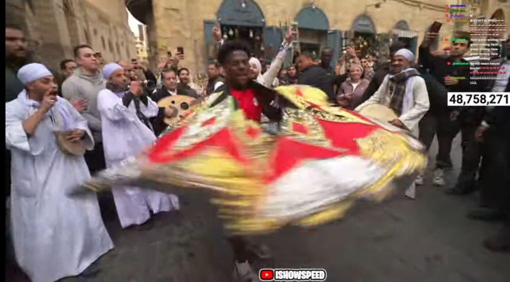 الخميس، 15 يناير 2026 04:16 مشارك اليوتيوبر العالمي سبيد في عرض فنى شعبى مصرى، بعدما انضم إلى فرقة تقدم فقرات التنورة والطبلة خلال جولته في أحد المناطق التراثية بالقاهرة، وذلك ضمن بث مباشر عبر قناته الرسمية على يوتيوب.
