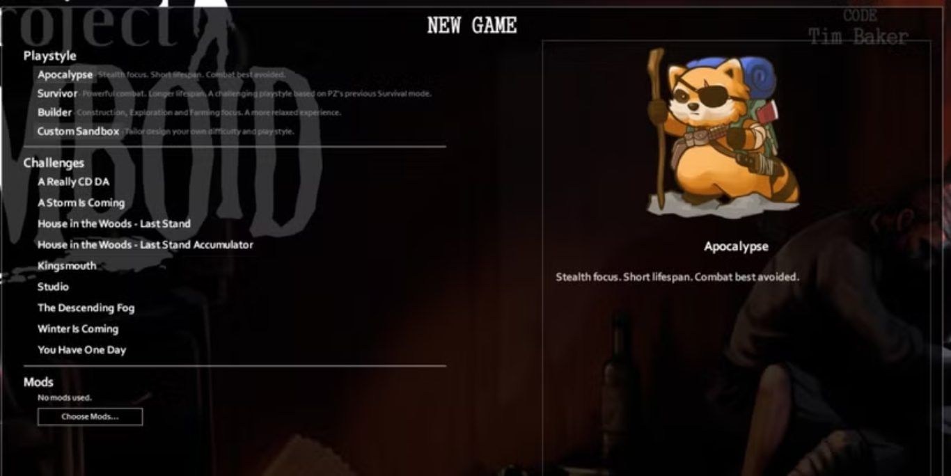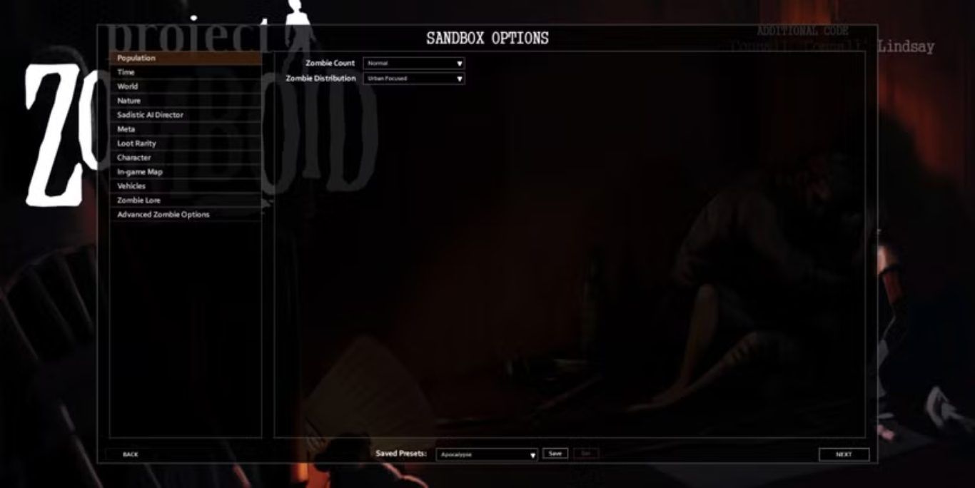 يمكن للاعبين تخصيص تجربة لعبة Project Zomboid بالكامل من خلال إنشاء لعبة مخصصة باستخدام خيار Custom Sandbox.