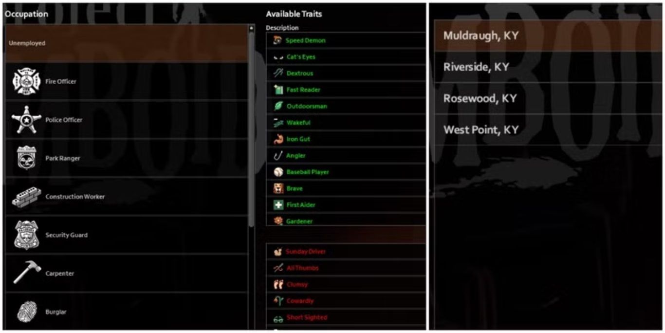 إضافة إلى ذلك، يجب تحديد موقع الظهور، وتوجد أربعة خيارات متاحة، وهي Muldraugh وRiverside وRosewood وWest Point.