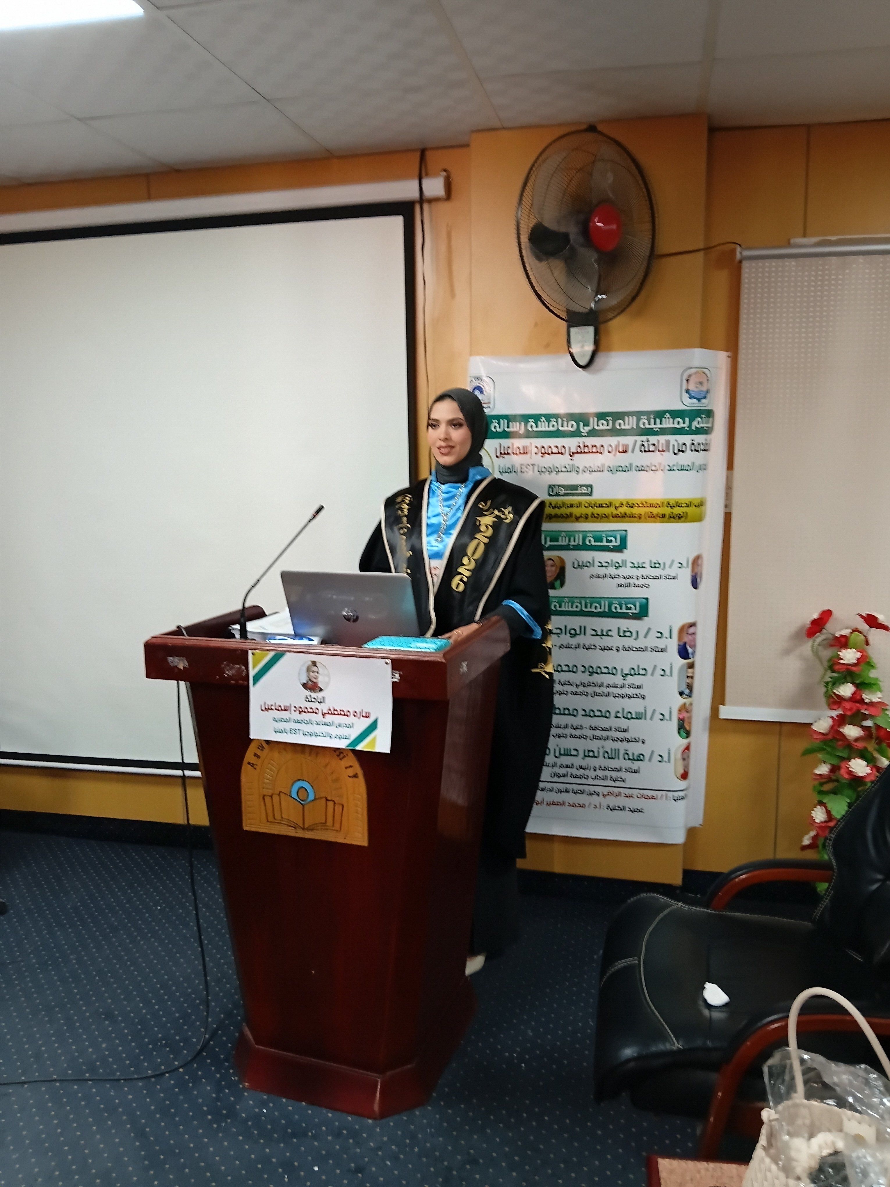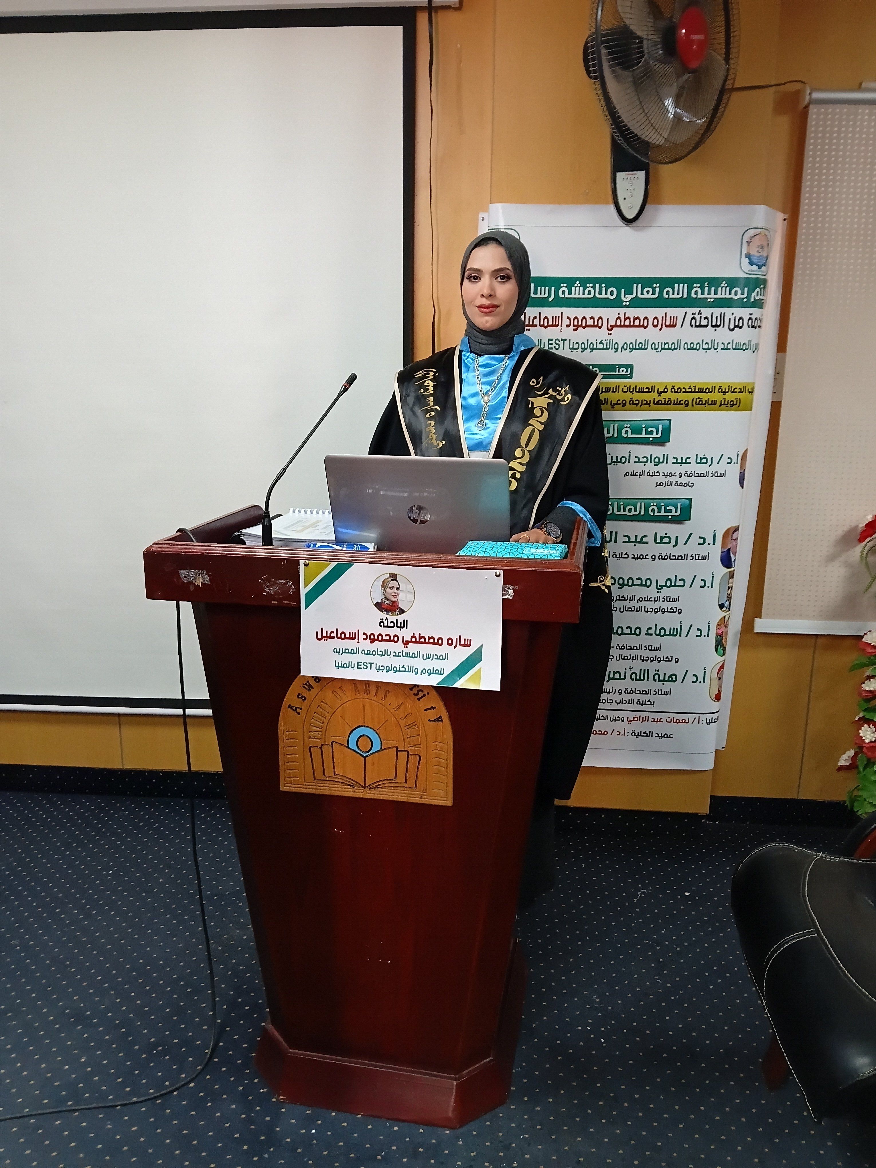 حيث تشكلت لجنة الإشراف من الدكتور رضا عبد الواجد امين استاذ الصحافة ، وعميد كلية الإعلام جامعة الأزهر ، والدكتورة أسماء محمد  مصطفي عزام، أستاذ الصحافة بكلية الاعلام وتكنولوجيا الاتصال بجامعة جنوب الوادي ، وتكونت لجنة المناقشة والحكم، من كل من الدكتور حلمي محمود محمد محسب أستاذ الإعلام اللإكتروني بكلية الإعلام جامعة جنوب الوادي. والدكتورة أسماء محمد  مصطفي عزام ، أستاذ الصحافة بكلية الاعلام وتكنولوجيا الاتصال بجامعة جنوب الوادي، والدكتورة هبة الله نصر حسن مصطفي استاذ  الصحافة ورئيس قسم الإعلام بكلية الآداب جامعة اسوان .