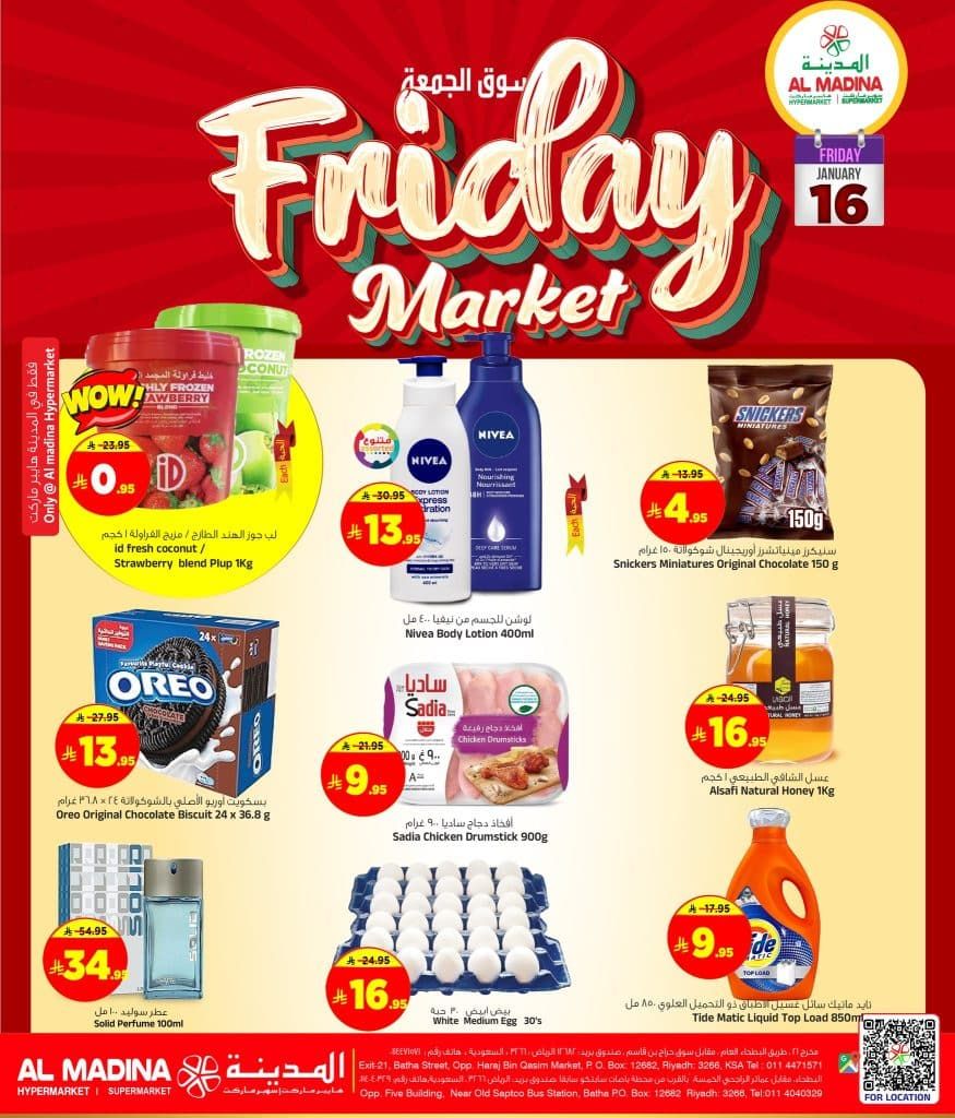 المدينة ماركت ليومين 16 – 17 يناير 2026 الويكند افضل العروض الحصرية في اسواق المدينة ضمن عروض تسوق الجمعة المذهلة على منتجات متنوعة غذائية و الكترونيات و متنوعة يسري العرض يومي الجمعة و السبت 16 و 17 يناير 2026