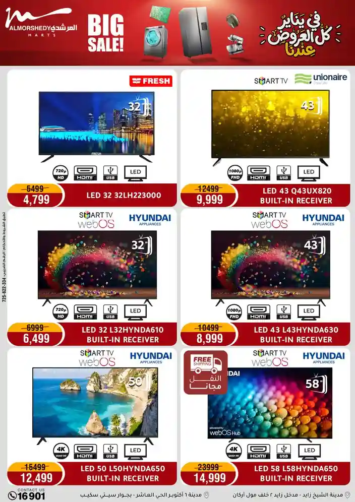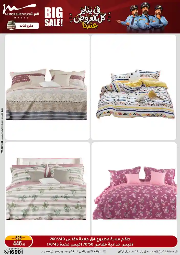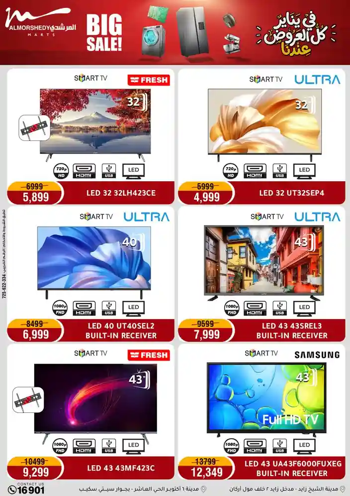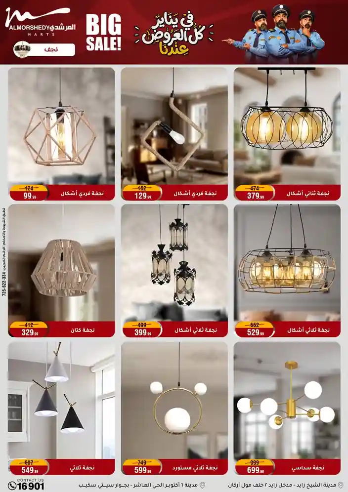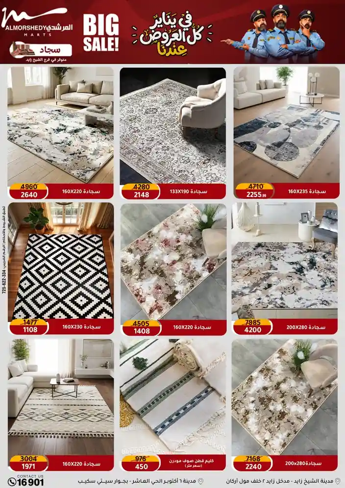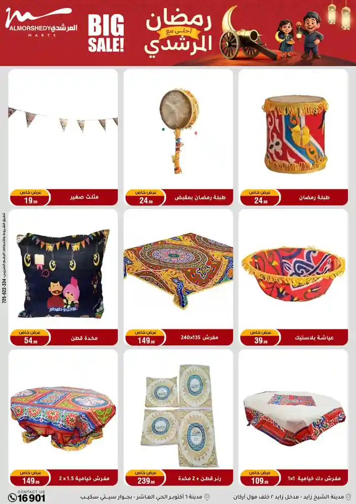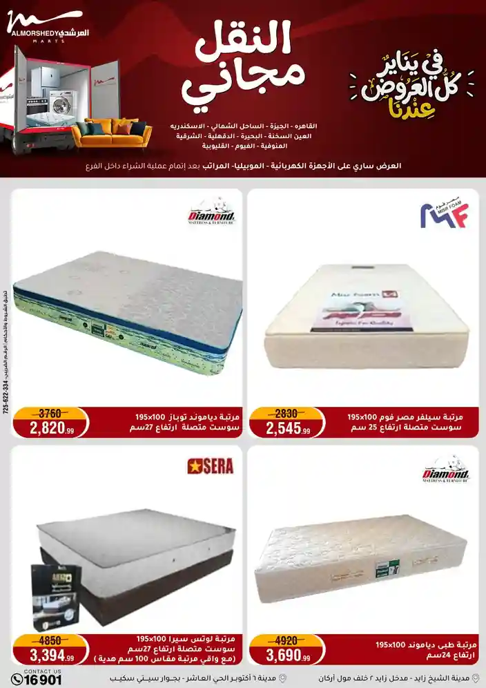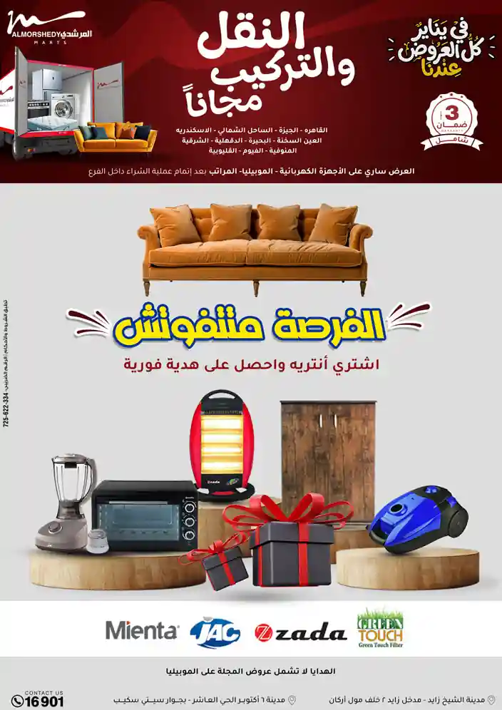عروض جديدة من أسواق المرشدي  مع اكبر مهرجان للتخفيضات في مصر خصومات حتى 70%  وقسط براحتك بدون فوائد بأسعار العروض المخفضة على 12 شهر لحاملي بطاقة ائتمان CIB أو براحتك مع VALU بدون مقدم حتى 60 شهر أو بدون مقدم وبدون فوائد مع نظام هاتريك وكمان النقل مجاني للقاهرة والجيزة والقليوبية على قسم الأجهزة الكهربائية والموبيليا والمراتب ( تطبق شروط المكان ) خصومات على جميع الأقسام أدوات منزلية – اجهزة كهربائية – مفروشات – موبيليا – نجف – سجاد – مراتب – ملابس رجالي وحريمي وأطفالي ومستلزمات ولعب الأطفال وجاليري وأقسام تانية كتير استمتع بالتسوق في أسواق المرشدي مع أكتر من 12 قسم و أكثر من 10,000 منتج يعني كل اللي بتحلم بيه عند المرشدي هتلاقيه