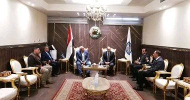 الخميس، 15 يناير 2026 08:04 مالتقى اللواء دكتور محمد الزملوط محافظ الوادي الجديد، اليوم، اللواء مهندس عمرو عبد المنعم رئيس هيئة تنمية الصعيد، وذلك بمقر الهيئة؛ لبحث سبل تعزيز التعاون المشترك ودفع المشروعات الجاري تنفيذها بنطاق المحافظة، بحضور الدكتور مازن شقوير مستشار رئيس الهيئة للتواصل الحكومي والمؤسسي.