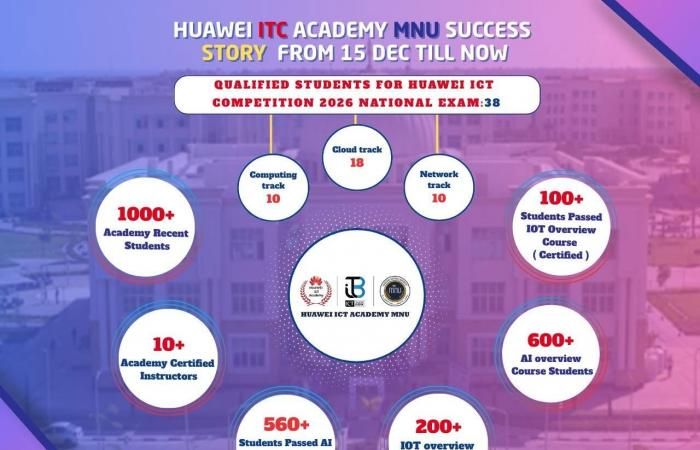 تواصل أكاديمية هاواوي جامعة المنصورة الأهلية تحقيق إنجازات ملموسة منذ انطلاقها الرسمي في 25 ديسمبر 2025، بما يعكس التزامها بإعداد كوادر تقنية مؤهلة وفقًا لأحدث المعايير العالمية، وذلك في إطار النجاحات المتواصلة لأكاديمية هواوي لتكنولوجيا المعلومات والاتصالات بجامعة المنصورة الأهلية وتحت رعاية الدكتور شريف خاطر رئيس جامعة المنصورة الأهلية وريادة الدكتور إيهاب عبدالحي قائم بعمل عميد كلية الهندسة ومدير أكاديمية هاواوي جامعة المنصورة الأهلية.