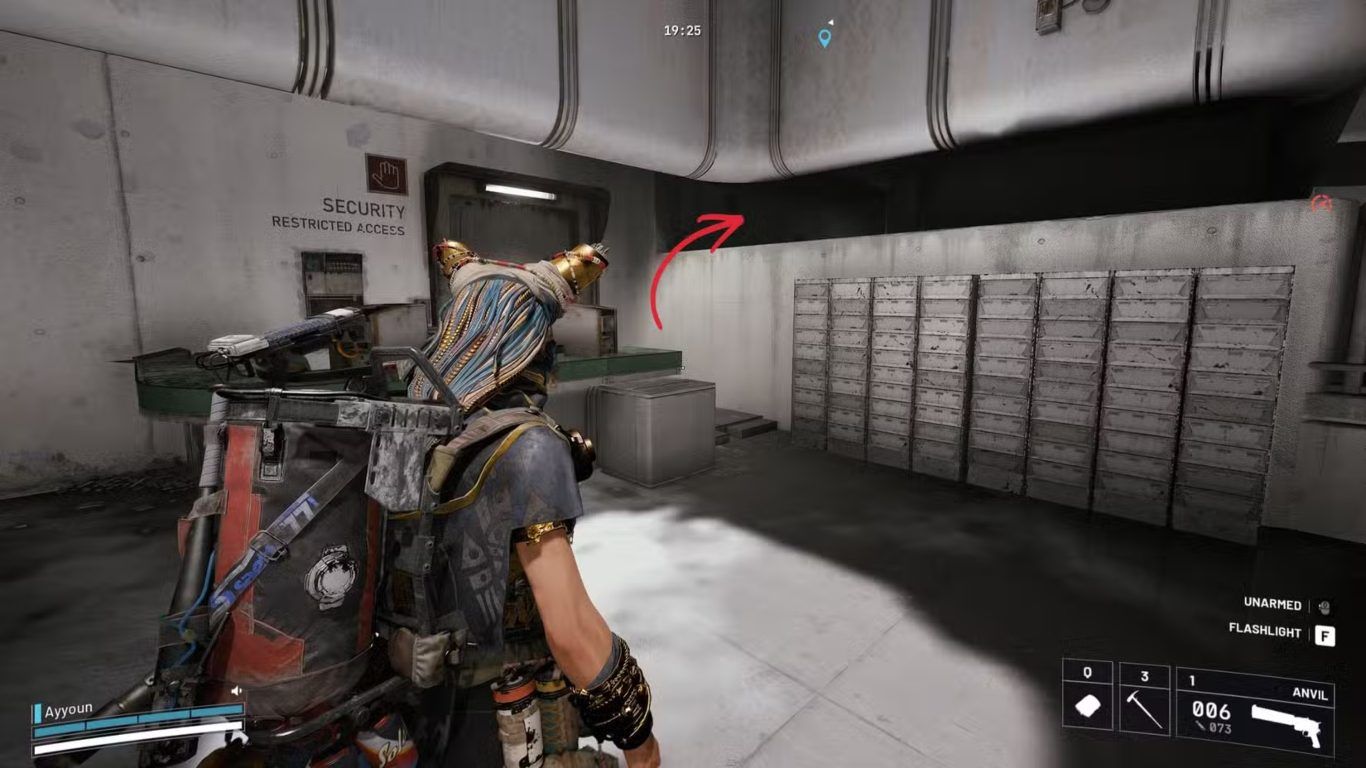 في حال الظهور بالقرب من هذه المنطقة داخل لعبة ARC Raiders يمكن استغلال الموقع بأقصى كفاءة ممكنة من خلال التحرك المباشر نحو الحافة الصغيرة القريبة من الباب القابل للاختراق في منطقة Security breachable door دون إضاعة أي وقت في الاستكشاف الجانبي غير الضروري.