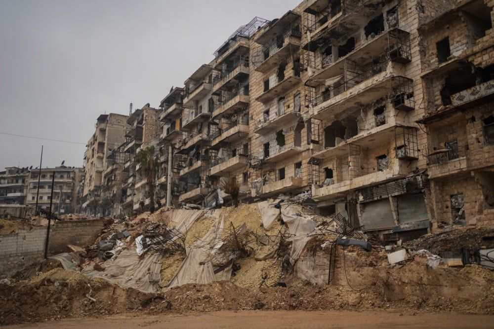 رصدت الكاميرا مبنى متضرر في أعقاب اشتباكات بين قوات سوريا الديمقراطية (قسد) بقيادة الأكراد وقوات الحكومة السورية وذلك في حي الأشرفية بمدينة حلب، وأعلنت وزارة الدفاع السورية وقف إطلاق النار في 9 يناير الحالى وذلك للسماح بمرور آمن لعناصر قسد باتجاه شمال شرق سوريا، بعد اندلاع اشتباكات عنيفة في 6 يناير بين قوات الحكومة السورية والمقاتلين الأكراد في الأحياء ذات الأغلبية الكردية .