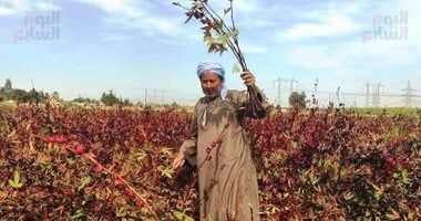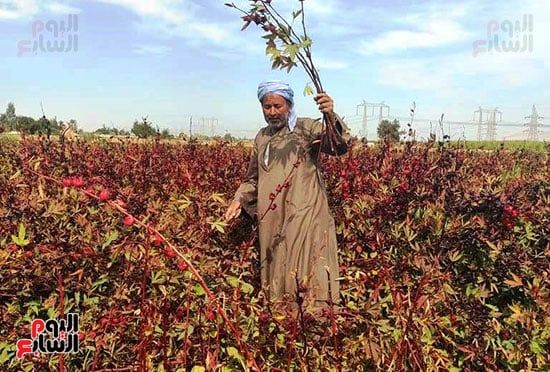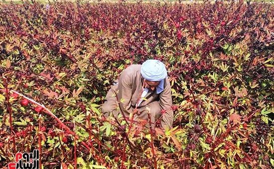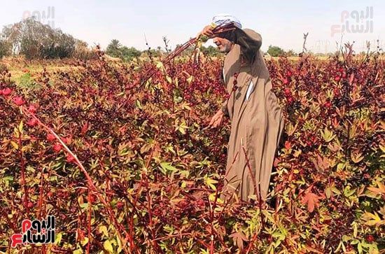 فرحة-مزارع-بموسم-حصاد-الكركدية-فى-الأقصر