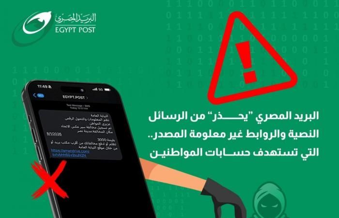 “البريد المصري” يحذر من رسائل نصية احتيالية.. تطلب سداد مخالفات مرورية