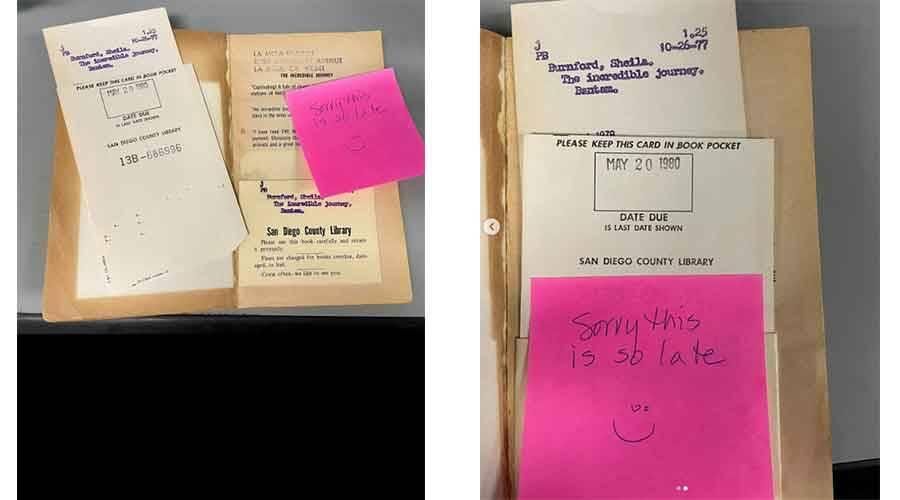 تفاجأت موظفة مكتبة مقاطعة سان دييغو بولاية كاليفورنيا عند فتحها لطرد بوجود كتاب بداخله كان من المقرر إرجاعه قبل نحو 46 عاماً، أي عام 1980.