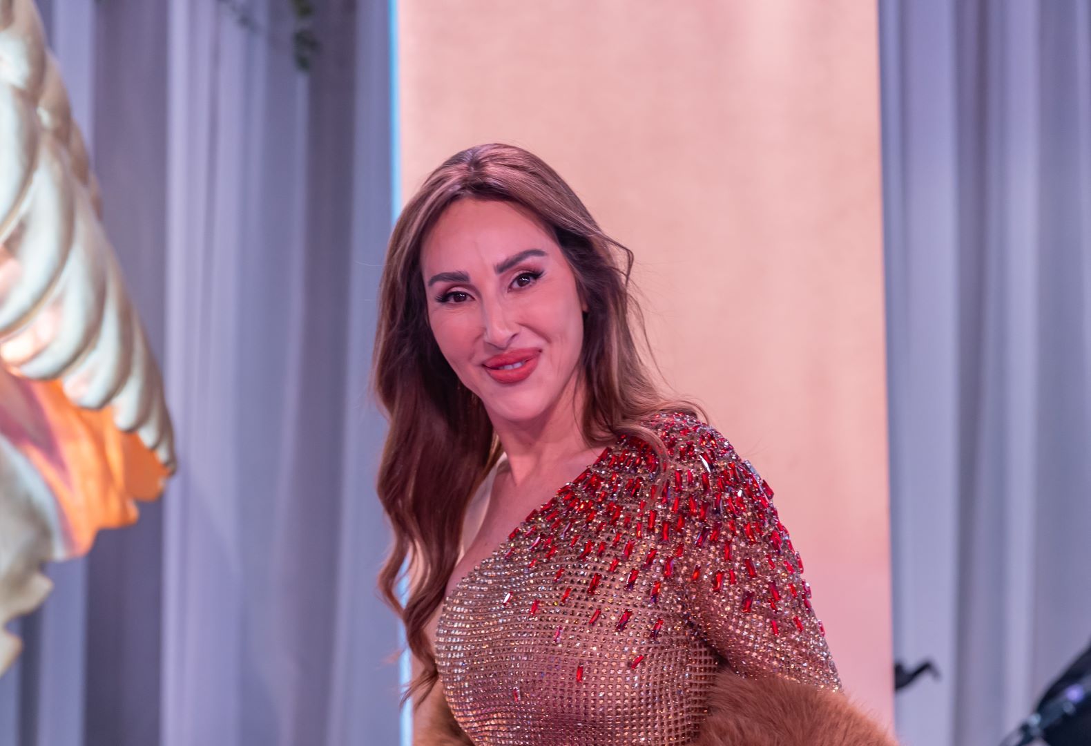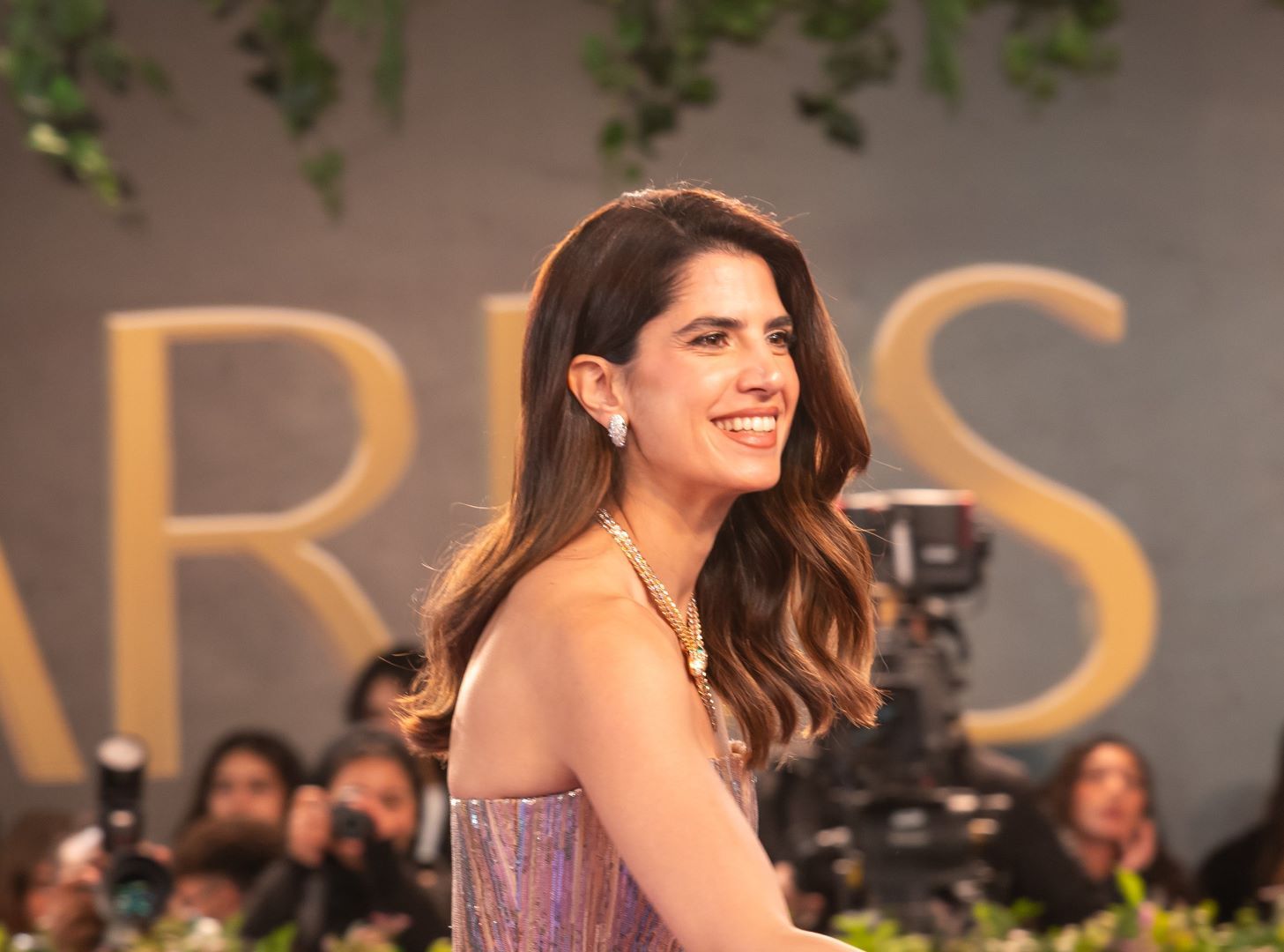 تألّقت كارمن بصيبص بمكياج بسيط وأنيق، ارتكز على مكياج عيون خفيف بتدرُّجات طبيعية أبرزت ملامحها من دون مبالغة. البشرة بدت نضرة ومضيئة، فيما أضافت الشفاه المشمشية لمسة دافئة ومنعشة، جعلت الإطلالة متوازنة ومناسبة لأجواء الحفل.