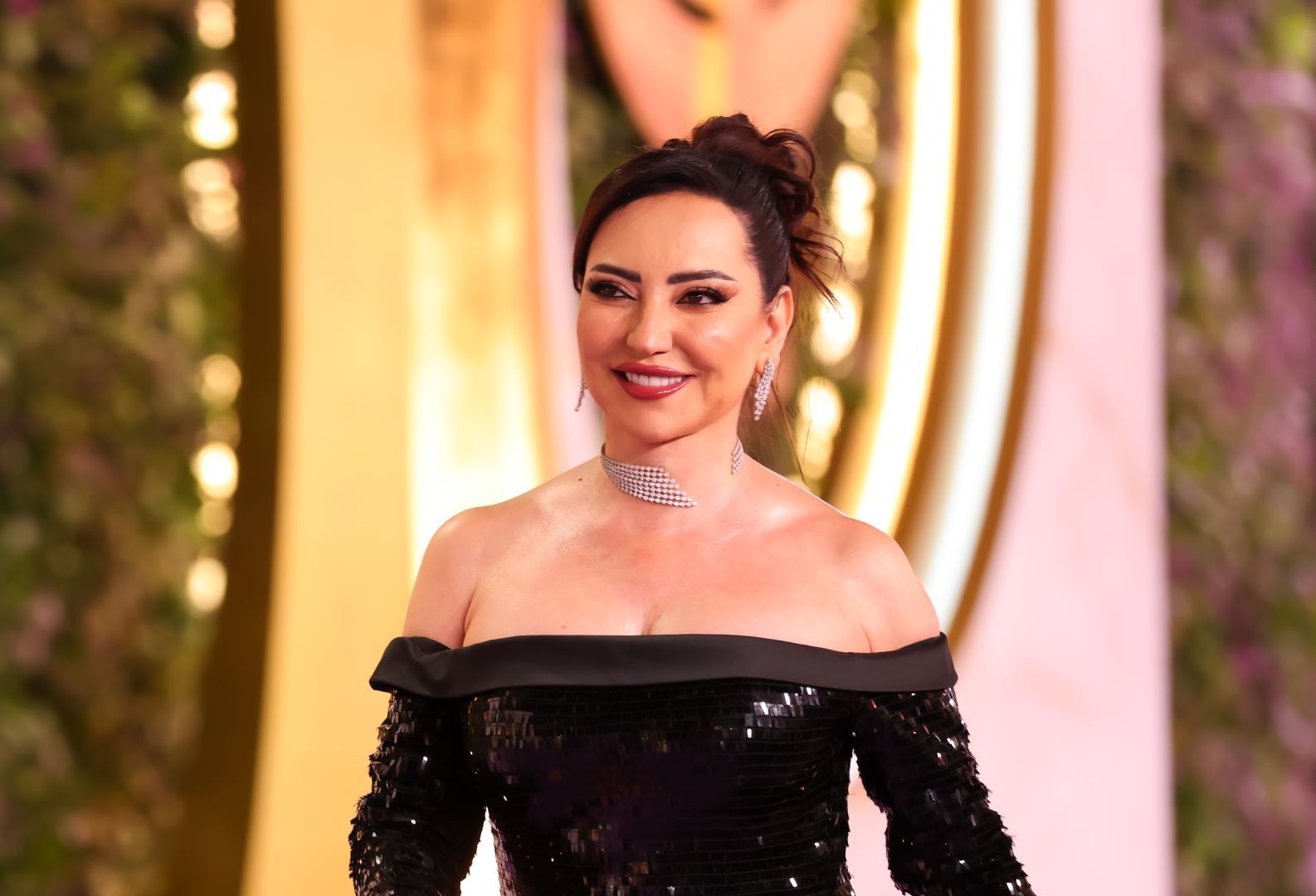الهام علي بمكياج زهري وتسريحة ذيل الحصان