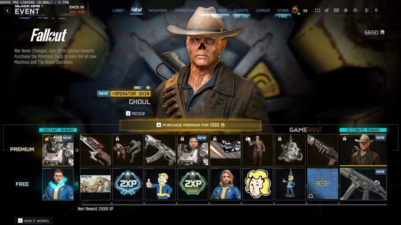أما المسار المدفوع من Fallout Event Pass فيتطلب 1100 COD Points لفتحه لكنه يسمح للاعبين بتجربة التقدم في الحدث أولا قبل اتخاذ قرار الشراء حيث يتم حفظ التقدم ويمكن استلام المكافآت بأثر رجعي بعد الترقية.