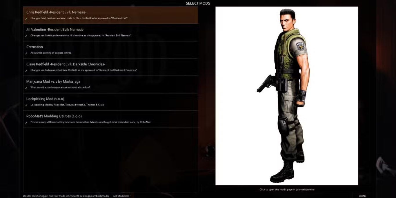 أي لعبة تتناول نهاية العالم بسبب الزومبي لا بد أن تُقارن بسلسلة Resident Evil بشكل أو بآخر. فكّر جمهور Project Zomboid بالطريقة نفسها، وقرر إضافة تحية ذكية وبسيطة لهذه السلسلة الأسطورية من ألعاب رعب البقاء عبر تعديل خاص.