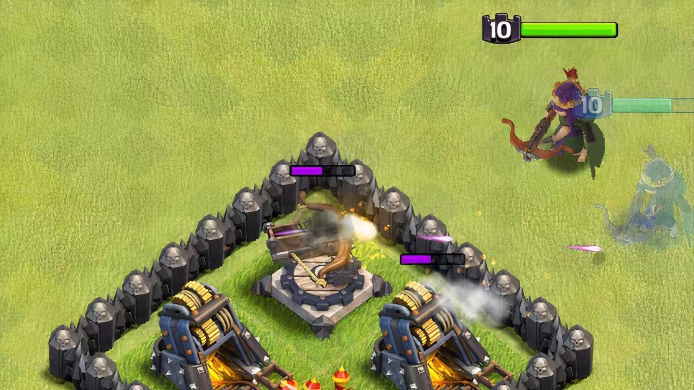 في المقابل يضيف Action Figure دعما هجوميا مباشرا عبر استدعاء وحدة قوية قادرة على امتصاص الضرر وكسر المباني مما يمنح Archer Queen مساحة أوسع لمواصلة إطلاق هجماتها من موقع آمن نسبيا داخل القاعدة.