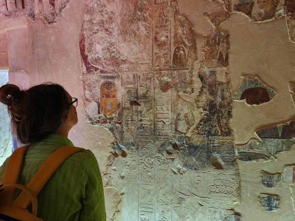 استغراق سائحة فى نقوش مقبرة طيبة تيبانا 39 في البر الغربى