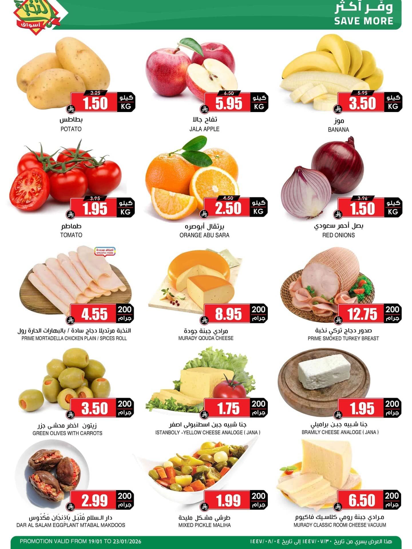 نستعرض معاكم احدث عروض اسواق النخبة الاثنين 19-1-2026 الموافق 30 شعبان 1447هـ و تحتوي علي تشكيلة من المنتجات الغذائية منها طبق البيض و اللحم المبرد الباكستاني و بتوفر كمان تشكيلة من الخضروات و الفواكه الطازجة و باقل الاسعار المناسبة للجميع فقط تابعونا ليصل اليكم كل جديد عن عروض السعودية