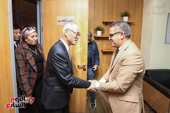 وكان فى استقبال السفير الياباني الكاتب الصحفى دندراوي الهوراي، رئيس التحرير التنفيذي، ومحمود جاد، مساعد رئيس التحرير ورئيس قطاع الخارجي، ورباب فتحى، رئيس قسم الخارجي.