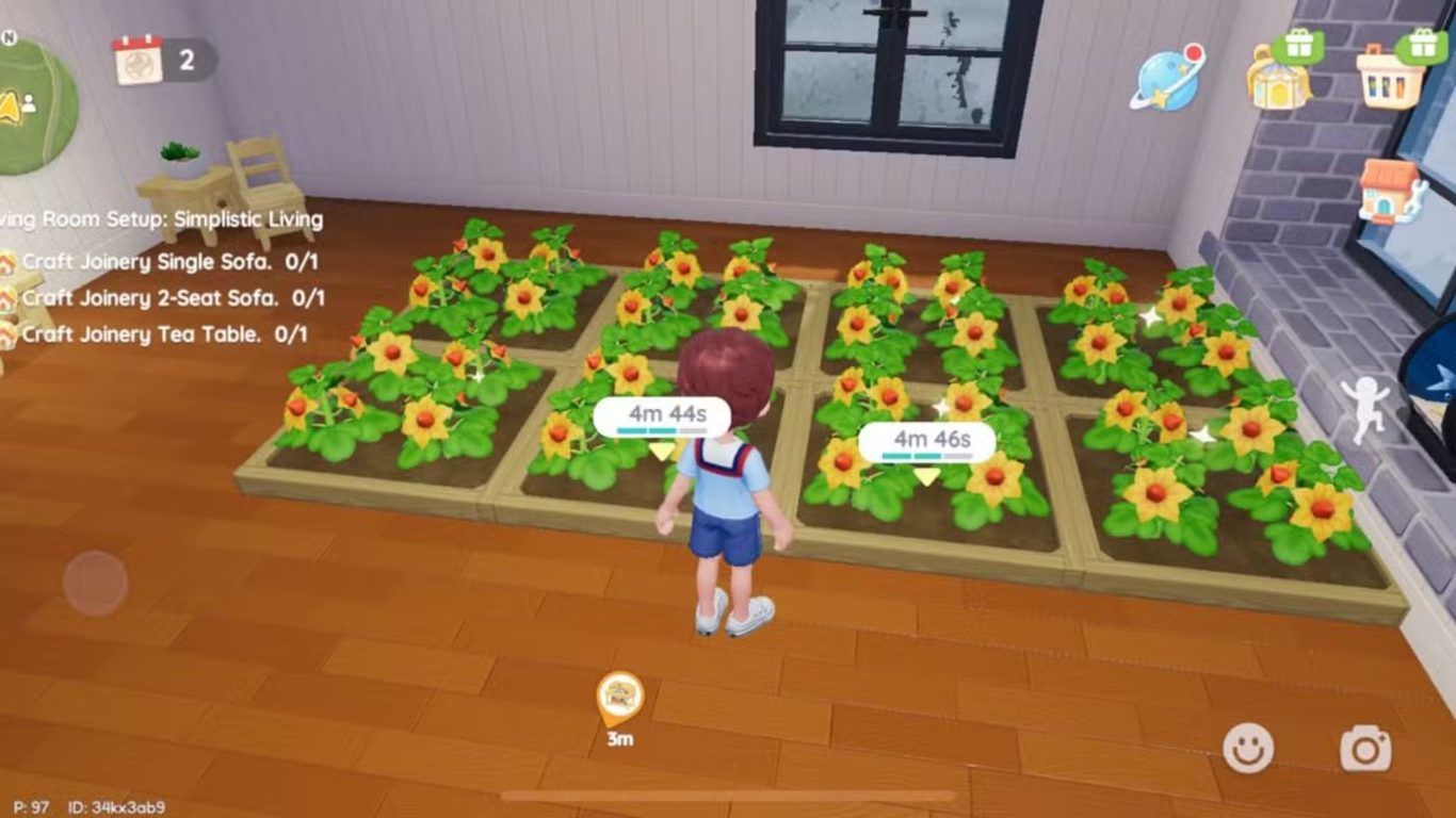 لا تنمو المحاصيل بشكل فوري داخل اللعبة بل تحتاج إلى فترة زمنية محددة حتى تكتمل حيث يتطلب كل نوع وقتا مختلفا فعلى سبيل المثال تحتاج الطماطم إلى حوالي خمس عشرة دقيقة للوصول إلى مرحلة الحصاد الكامل وهو ما يضيف بعدا واقعيا لتجربة اللعب.