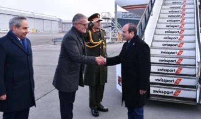 الرئيس عبد الفتاح يصل مطار زيورخ الدولي