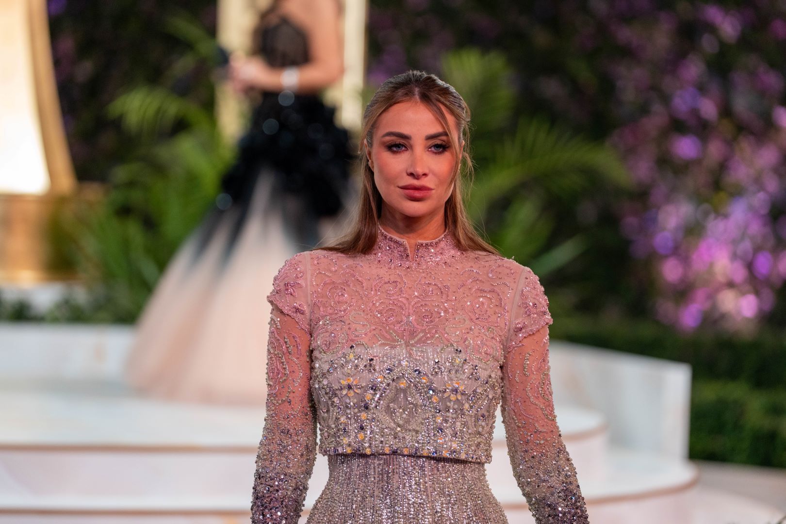 من جهتها، تألّقت أنابيلا هلال بتسريحة شعر نصف مرفوعة مع فرق نصفي وخصلات منسدلة على جانبي الوجه، جسّدت توازُناً مثالياً بين الأناقة الهادئة والأنوثة العصرية. تم سحب الجهة الأمامية من الشعر بخفّة الى الخلف مانحاً الإطلالة بنية أنيقة تُبرز الملامح بثقة. فيما جاء الفرق نصفياً ليؤطّر الوجه بلمسة ناعمة تضيف شباباً وحيوية من دون أن تكسر رقيّ التسريحة.