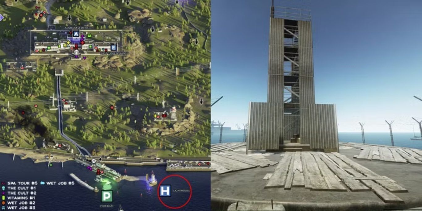 قد يوحي اسم Lighthouse بوجود منارة واضحة، لكن الموقع في الواقع هو موضع منارة قديمة تعلوها بنية بدائية شيدها عناصر Scav تشبه برجًا قصيرًا. يقع هذا الموقع على طول الساحل الجنوبي، في نهاية لسان رملي صغير تقع فوقه منطقة المرسى المركزي.
