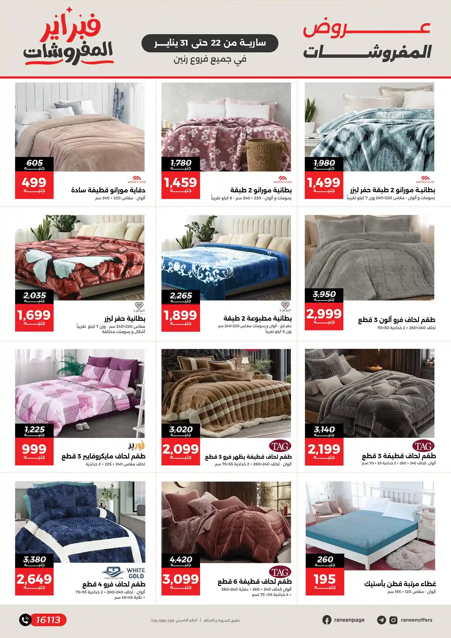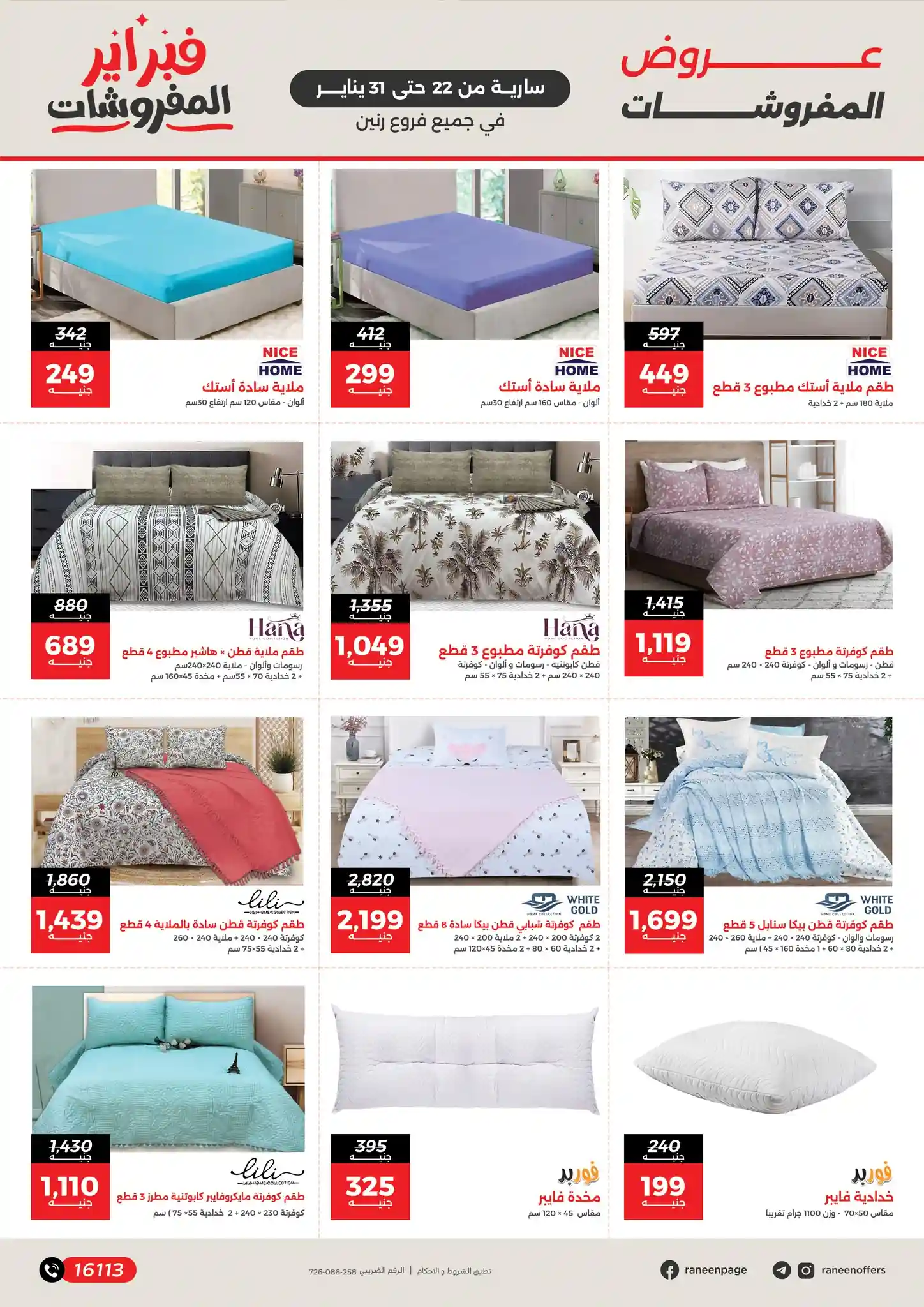 اليوم 22 يناير حتى 31 يناير 2026 خصومات المفروشات بجميع فروع رنين