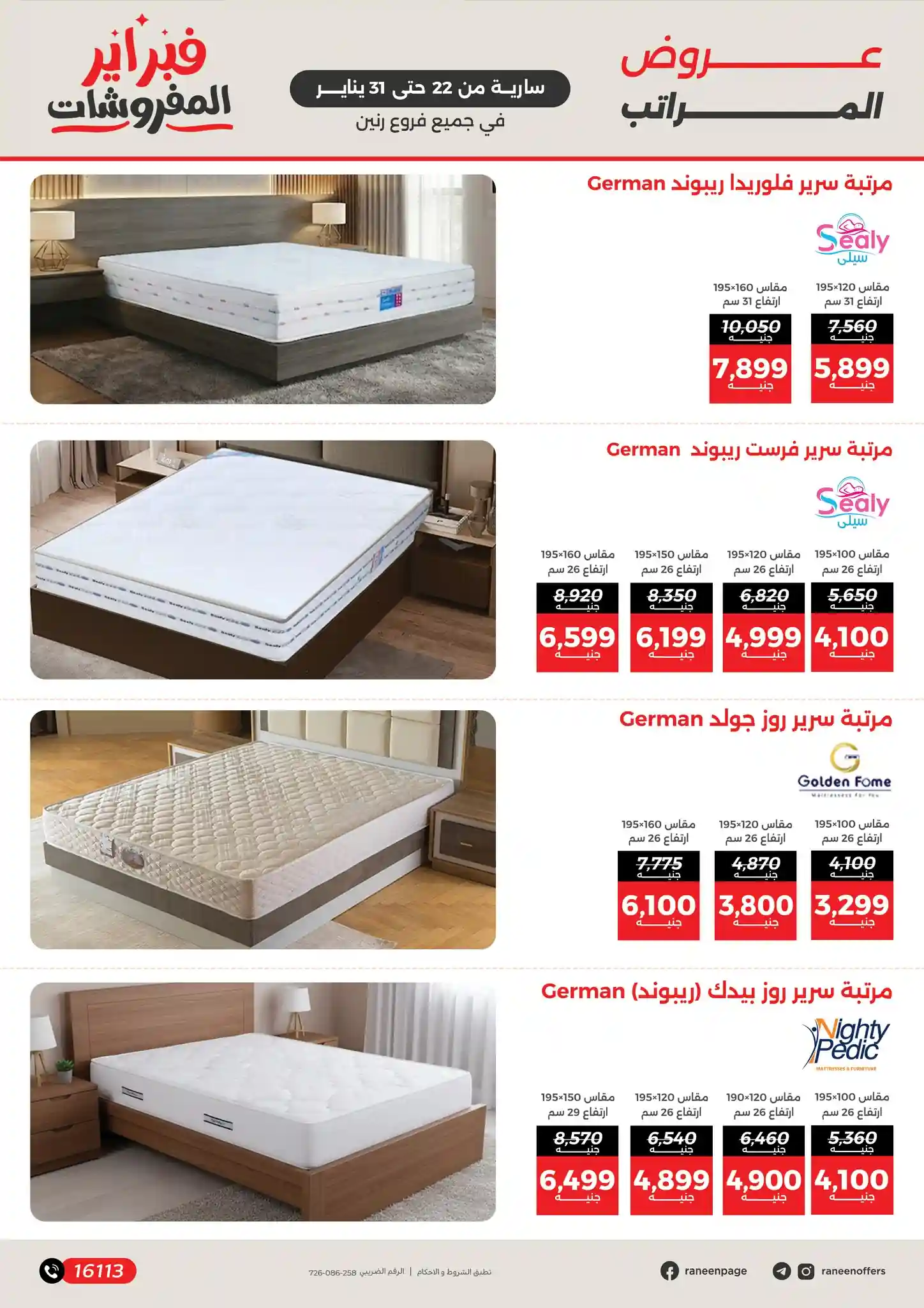 عروض رنين اليوم 22 يناير حتى 31 يناير 2026 خصومات المفروشات
