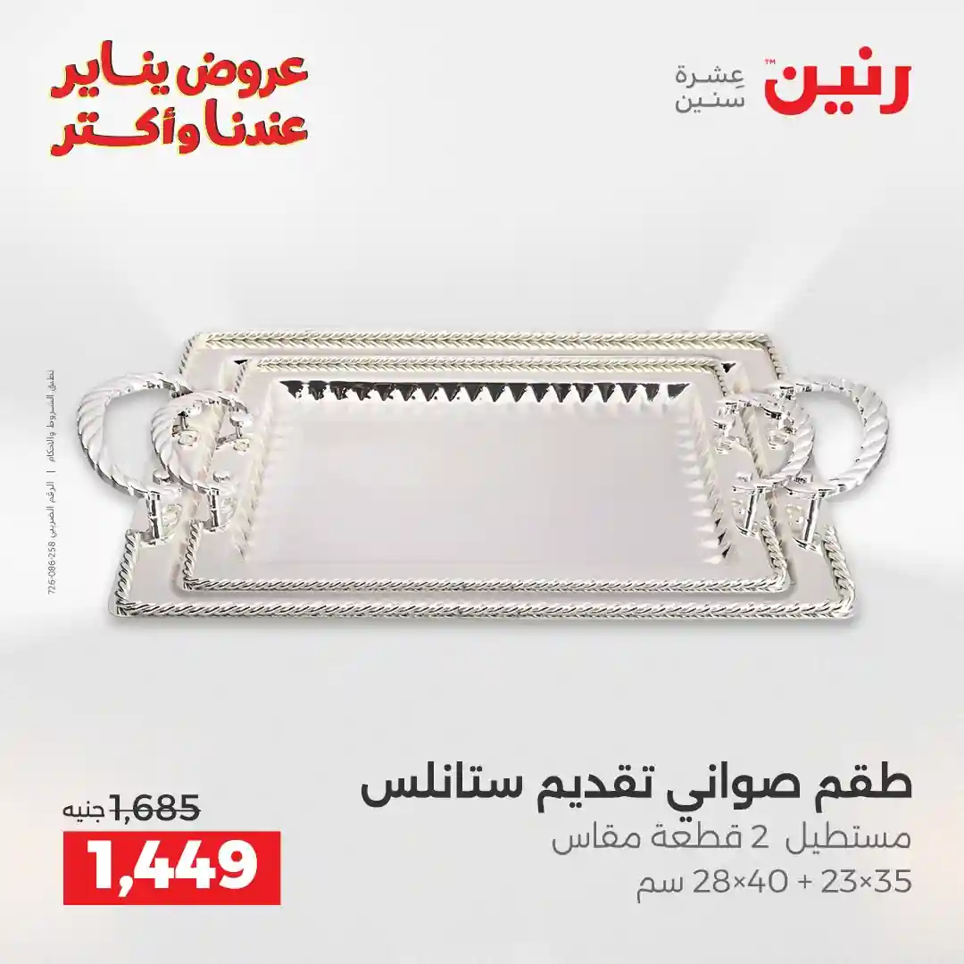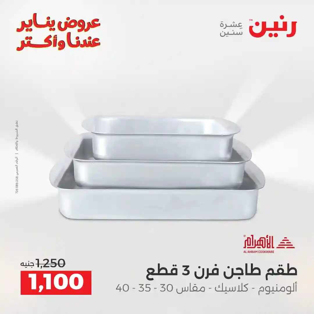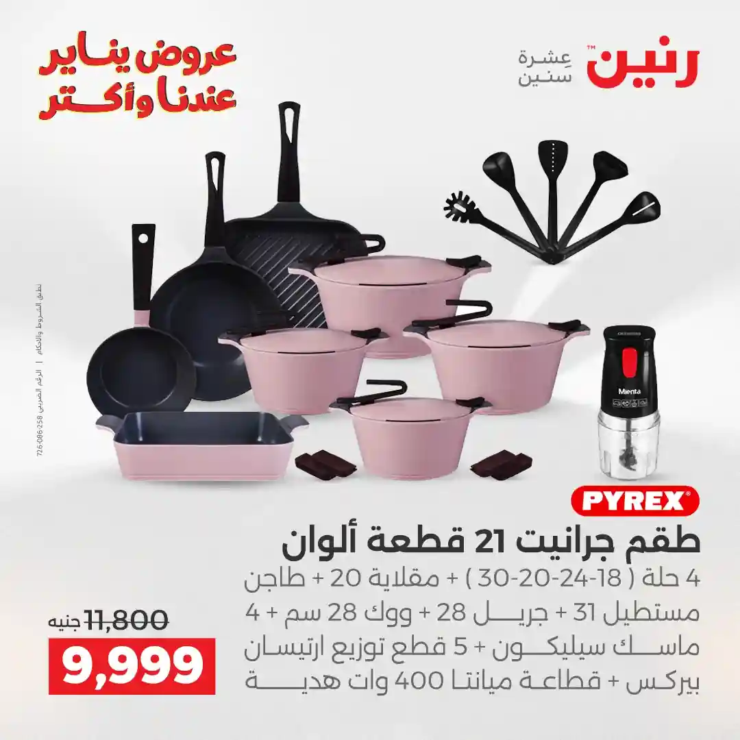 تسرى عروض رنين من يوم الجمعة والسبت 23 و 24 يناير 2026 كملي رفايع مطبخك بجميع الفروع