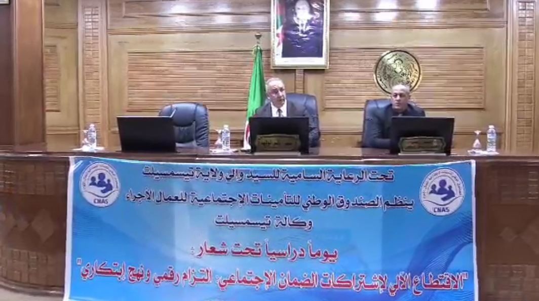 احتضن مقر ولاية تيسمسيلت فعاليات يوم دراسي خصّص لموضوع الاقتطاع الآلي لاشتراكات الضمان الاجتماعي، تحت شعار «التزام رقمي ونهج ابتكاري».