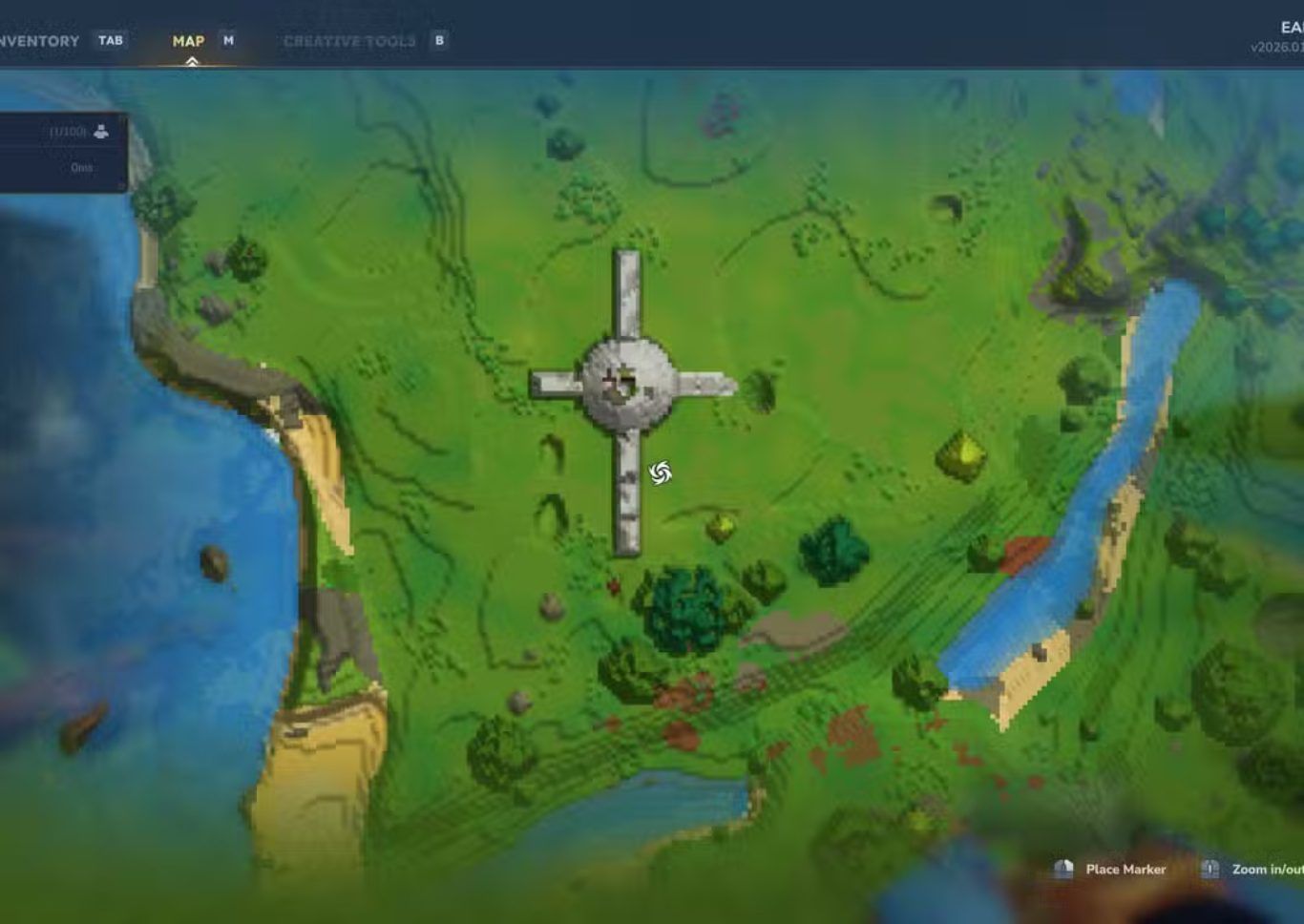 عند عبور البوابة والوصول إلى الجهة الأخرى يستقبل اللاعب تجمعا كبيرا من NPCs داخل منطقة واسعة منظمة حيث يقود المسار الرئيسي في منتصف الموقع إلى بنية تشبه المذبح في مركز المكان.