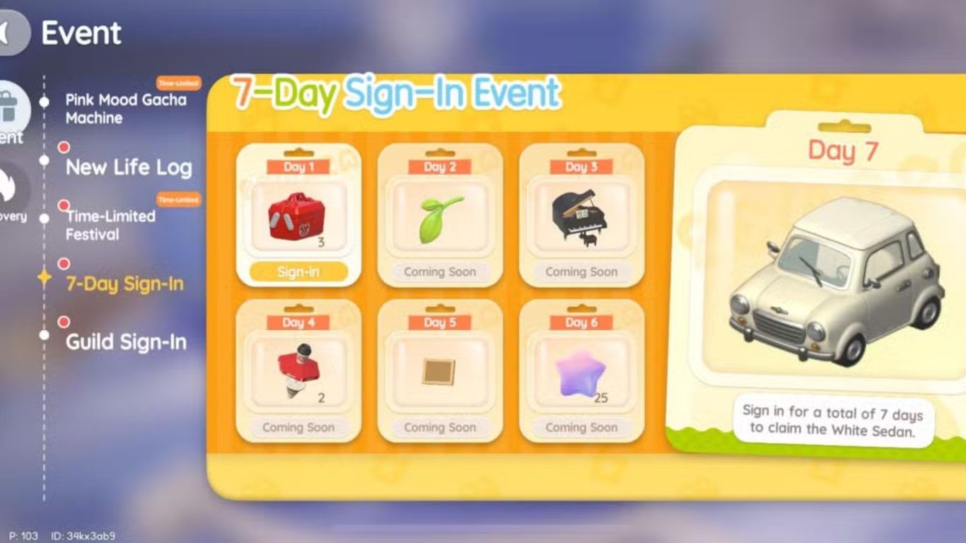 كل ما يحتاجه اللاعب للحصول على سيارة White Sedan هو تسجيل الدخول إلى لعبة Heartopia لمدة سبعة أيام حيث يتم احتساب هذه الأيام ضمن سجل المكافآت اليومية.