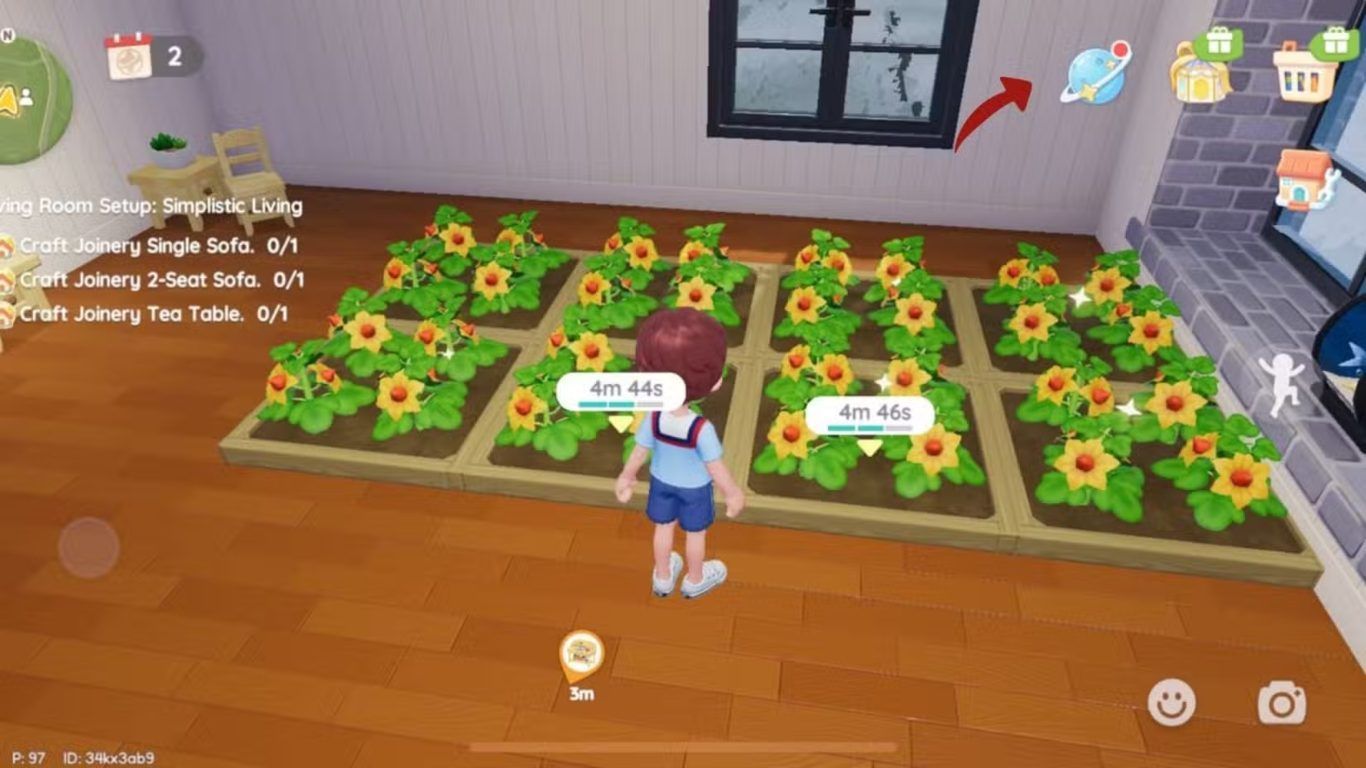 بعد الدخول إلى لعبة Heartopia يجب التوجه إلى واجهة اللعبة الرئيسية ثم الضغط على أيقونة الكرة الأرضية الموجودة في أعلى يمين حيث يؤدي ذلك إلى فتح قائمة خاصة بالمزايا والخدمات المرتبطة بحساب اللاعب.