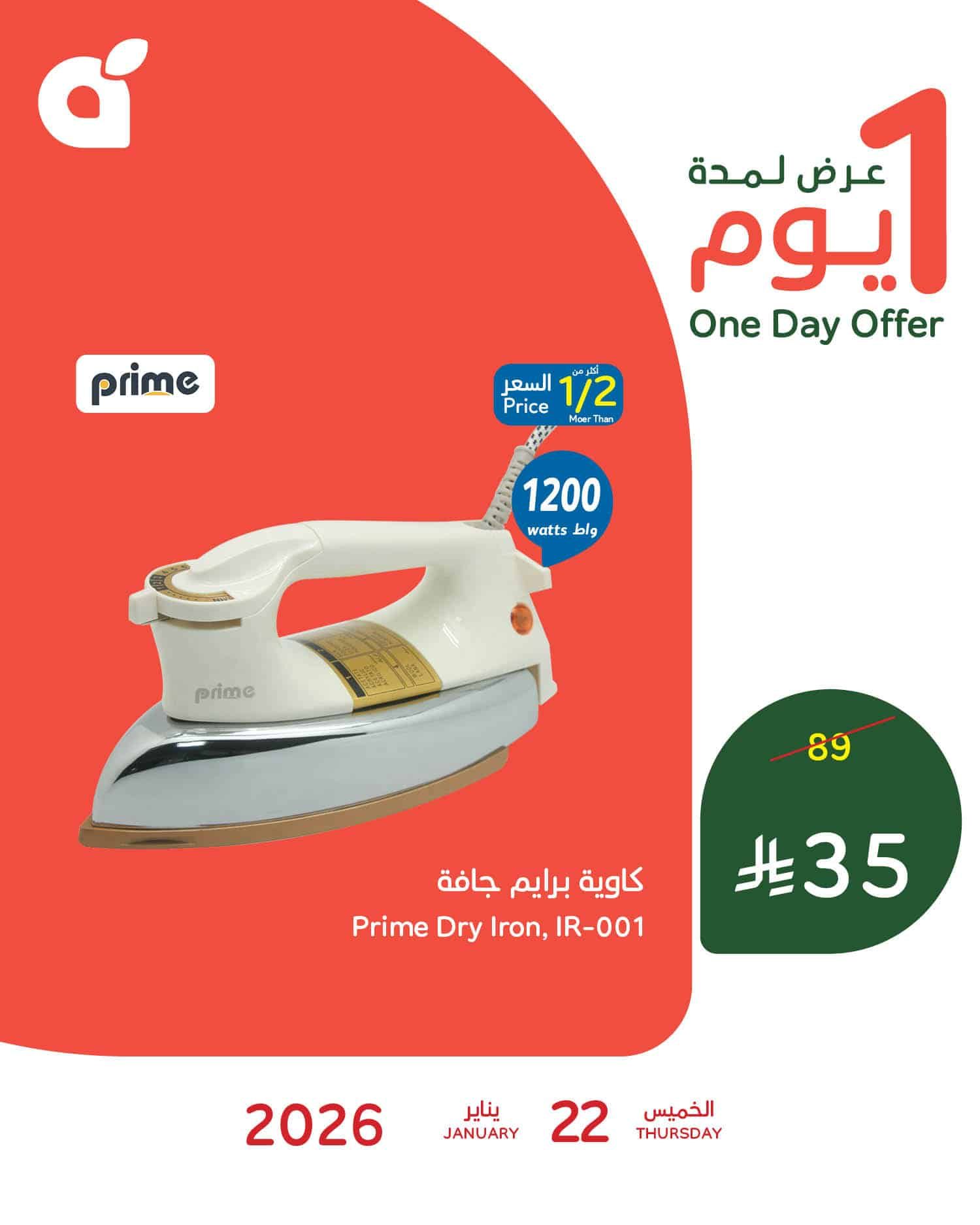 بنقدم ليكم احدث عروض بنده الخميس 22 يناير 2026 الموافق 3 شعبان 1447هـ و تحتوي علي افضل الاجهزة و الادوات المنزلية و خاصة بالمطبخ منها طقم مقلاة غير لاصقة و ايضا بتوفر كاوية برايم جافة في صفقة حصرية متاحة اليوم فقط و باسعار مميزة ابقوا معنا ليصلكم كل جديد عن عروض السعودية .